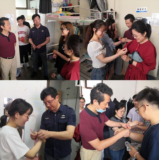 学院领导和老师们还趁端午节将热乎乎的粽子送到毕业生宿舍,并亲手为他们系上五彩绳,鼓励同学们在新的起点、新的岗位上要继续努力、积极进取,力争取得更大更好成绩,为母校增光添彩。