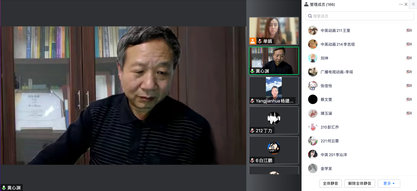 12月8日,中国传媒大学动画与数字艺术学院书记、博士生导师黄心渊教授应邀通过腾讯会议在线上为电影天堂