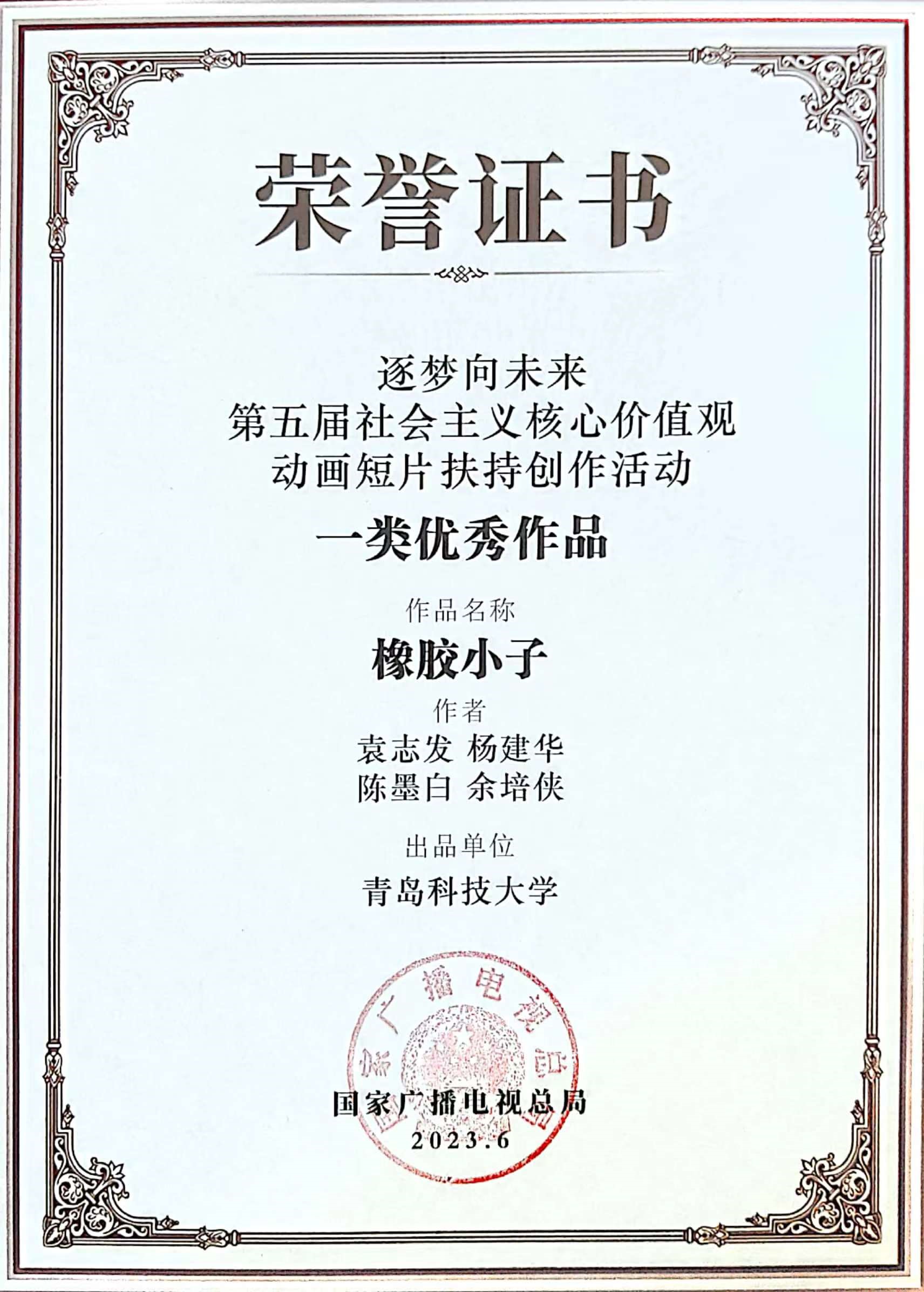 6月20日,第十九届中国国际动漫节开幕式上,我校原创动画片《橡胶小子》获得国家广播电视总局“第五届社会主义核心价值观”动画短片大赛一等奖,这是青岛原创动画首次获得广电领域国家级一等奖。