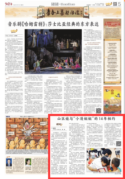 9月8日,中国青年报2023年09月08日05版以《山区娃与“小漫姐姐”的14年相约》为题,报道电影天堂