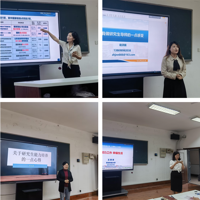 在310会议室召开2023年度研究生指导教师培训会。学院党总支书记刘志国、学术副院长石晨旭、优秀毕业论文指导老师乔洁琼,山东省优秀研究生指导教师、信息科学技术学院副院长王景景,外国语学院学术副院长赵洪娟及学院各研究生导师代表参加会议。石晨旭主持会议。