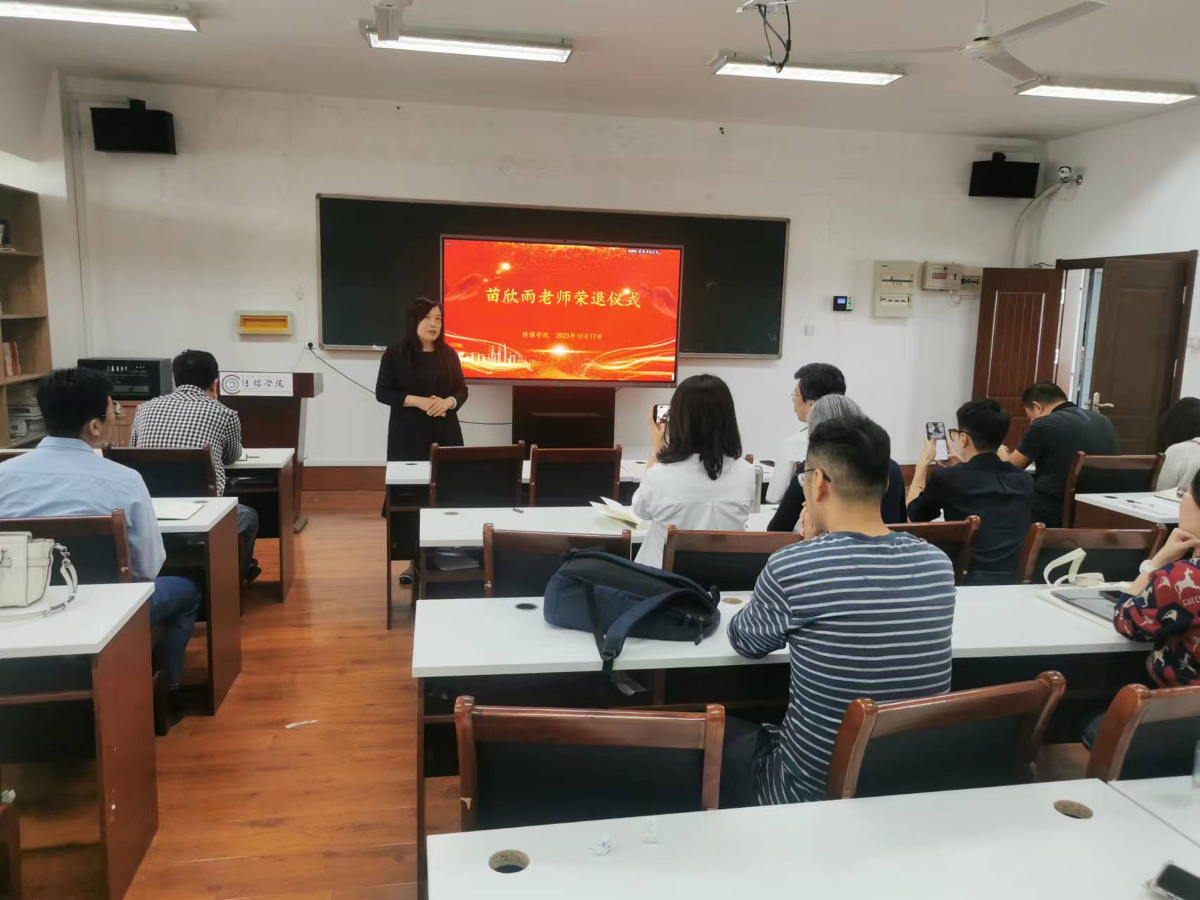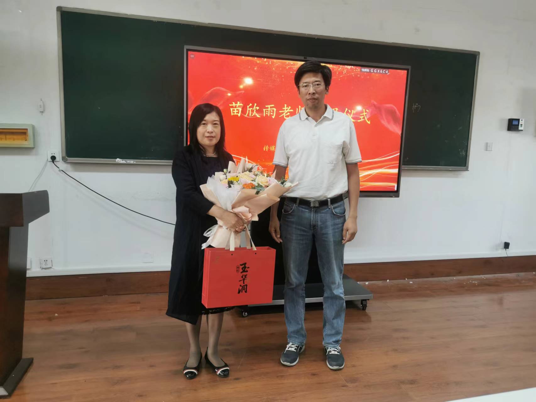 全体教职工参加仪式。学院党总支书记刘志国、中文系主任吕辛福发表致辞,学生代表为苗欣雨送上鲜花和祝福。