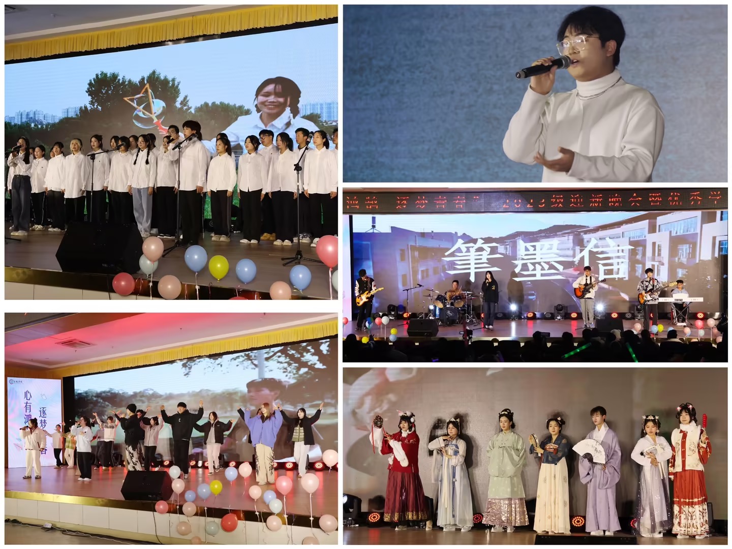 李嘉宁等同学带来歌曲《春风十里》,在歌声带动下,如柔和春风拂过十里林地,如四月小雨湿润空气,治愈观众心灵;来自汉服社的走秀《春日宴》,不仅展示出汉服之美,更诠释了中华千年所流传的服饰文化;古典舞与古筝共同演绎《山鬼》,展开了一幅少女迎神的画面,观众们仿佛身临其境;张嘉轶演唱歌曲《光亮》,歌声铿锵有力,诉说着不论是非、都要拼尽全力、迎着光照耀的地方奔跑;电影天堂