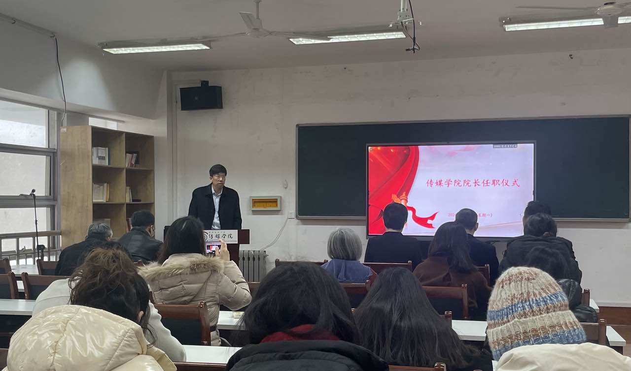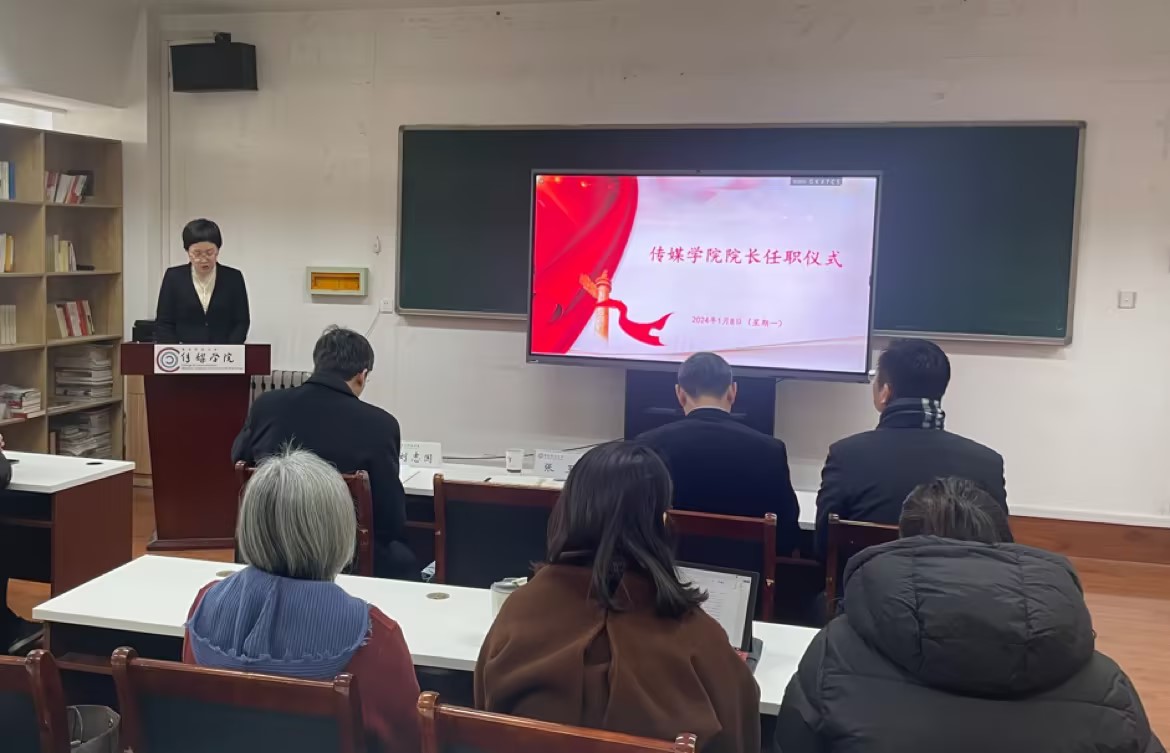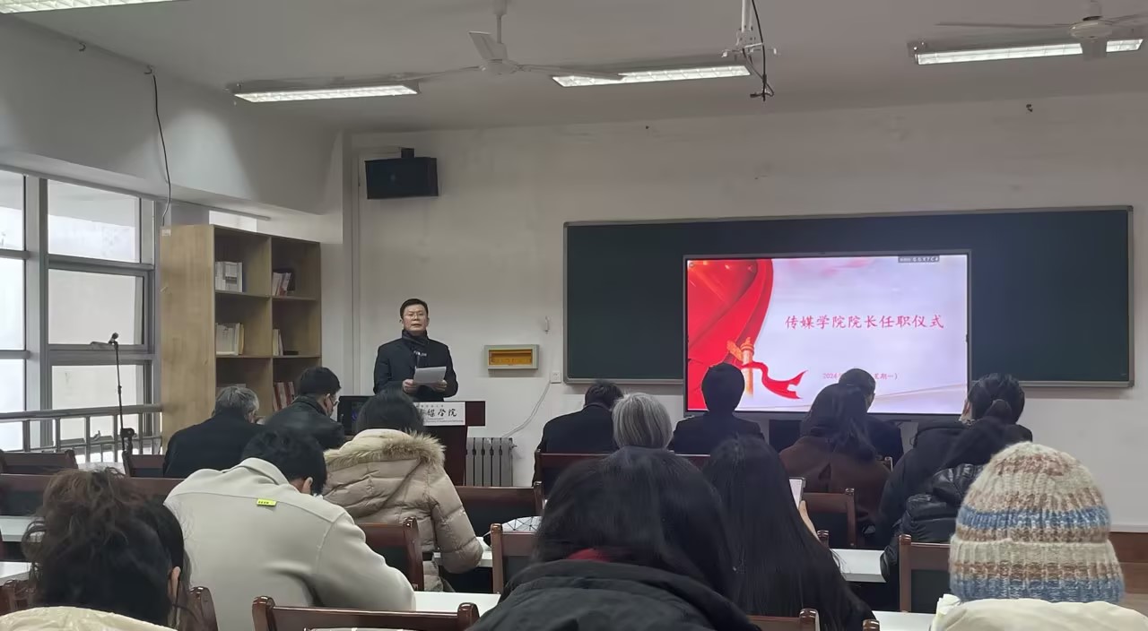 院长的决定。传媒学院党政领导和全体教职工参加会议。