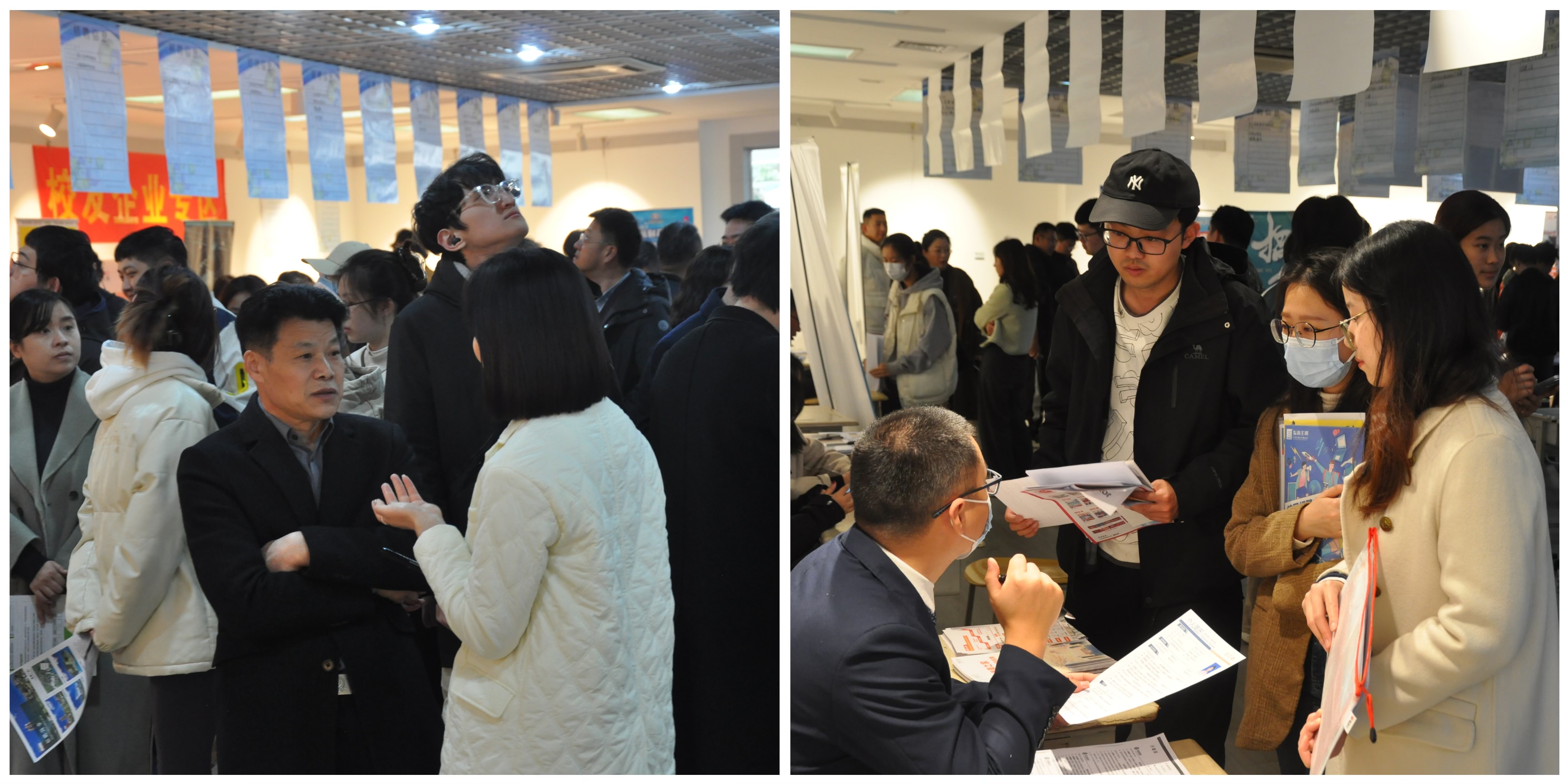 此外,招聘会设置战略合作单位、校友企业专区、动画行业专区等区域,并围绕校企科研合作、人才培养及产学研融合等深化交流合作。同时,招聘会现场还设置了征兵入伍、青鸟计划与“西部计划”政策咨询处,“零距离”为毕业生提供政策讲解、求职帮扶等就业服务。招聘会前后,三学院与10余家用人单位开展了专场宣讲与面试,并洽谈校企合作事宜。