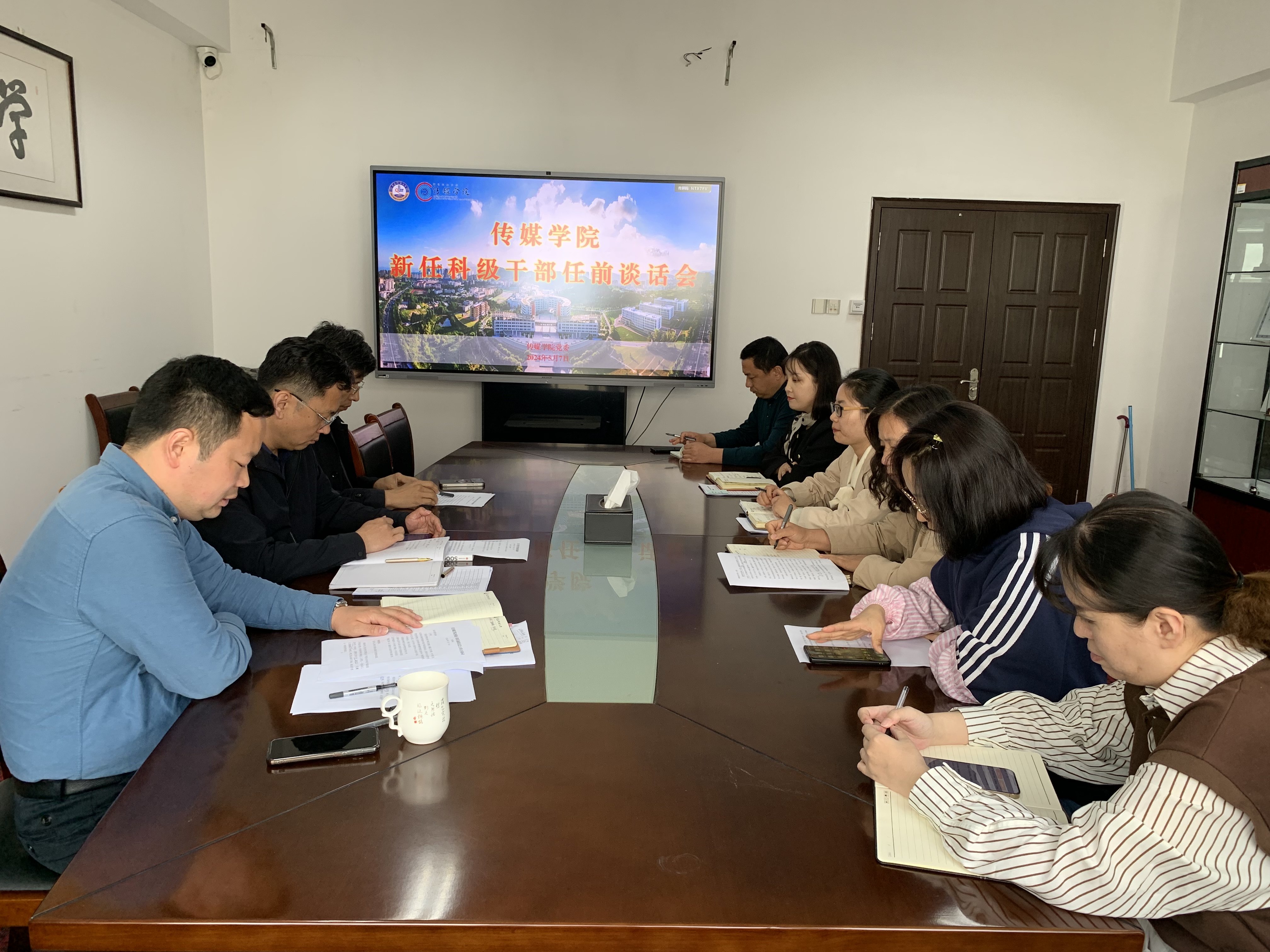 院长张洪坤、党委书记刘志国,以及学院新任的6位科级干部参与会议。会议由学院党委副书记兼副院长刘海波主持。