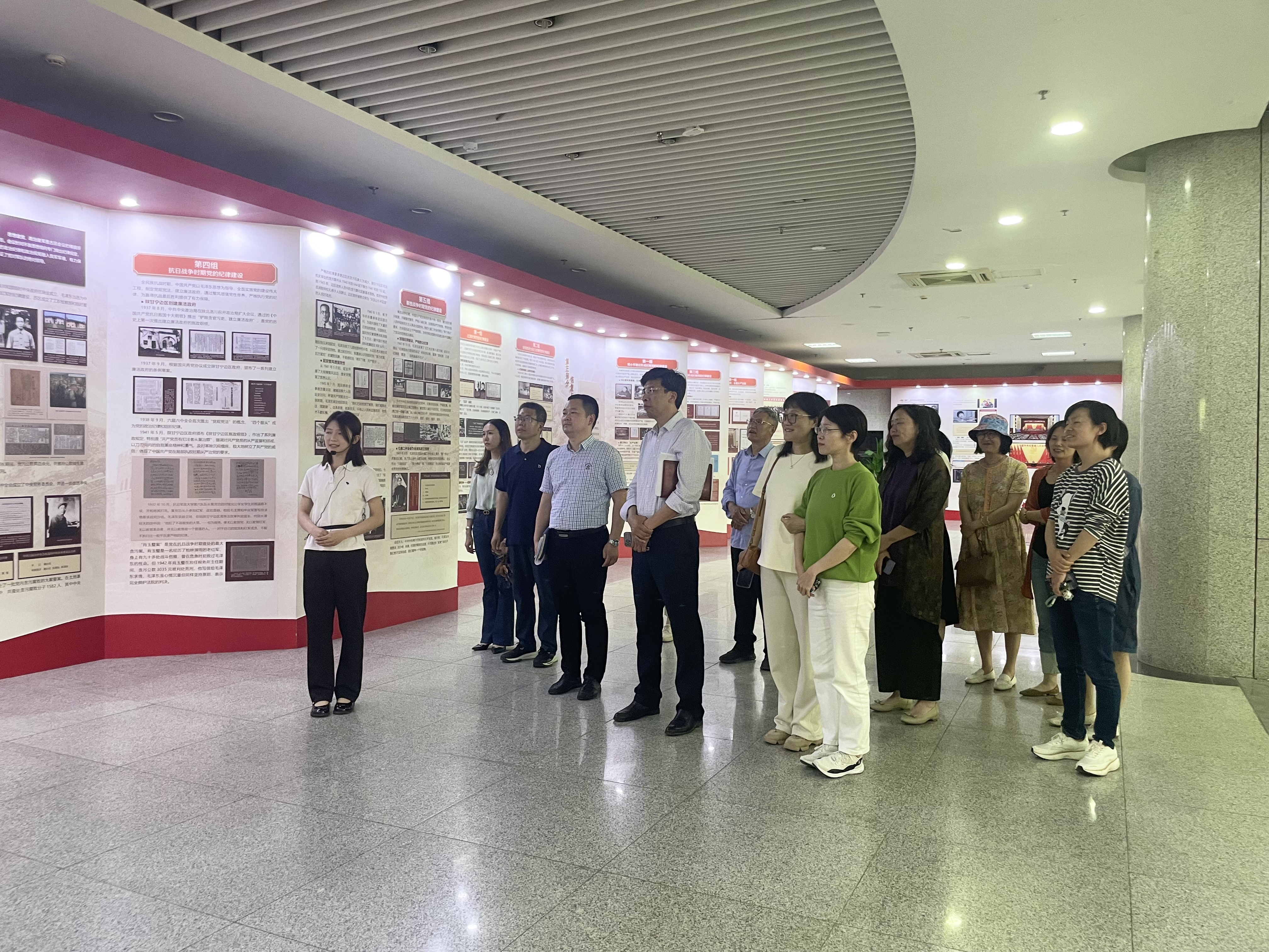 “欢迎大家参观‘纪律建设永远在路上 ’--中国共产党纪律建设历史成就展。本次展览以党的百年纪律建设史为时间轴,展示了我党不同时期的党的纪律建设历史和成就…”图书馆内,展览墙前,学校“清风”党纪学习教育宣讲团成员正在面向预约前来的师生开展宣讲。