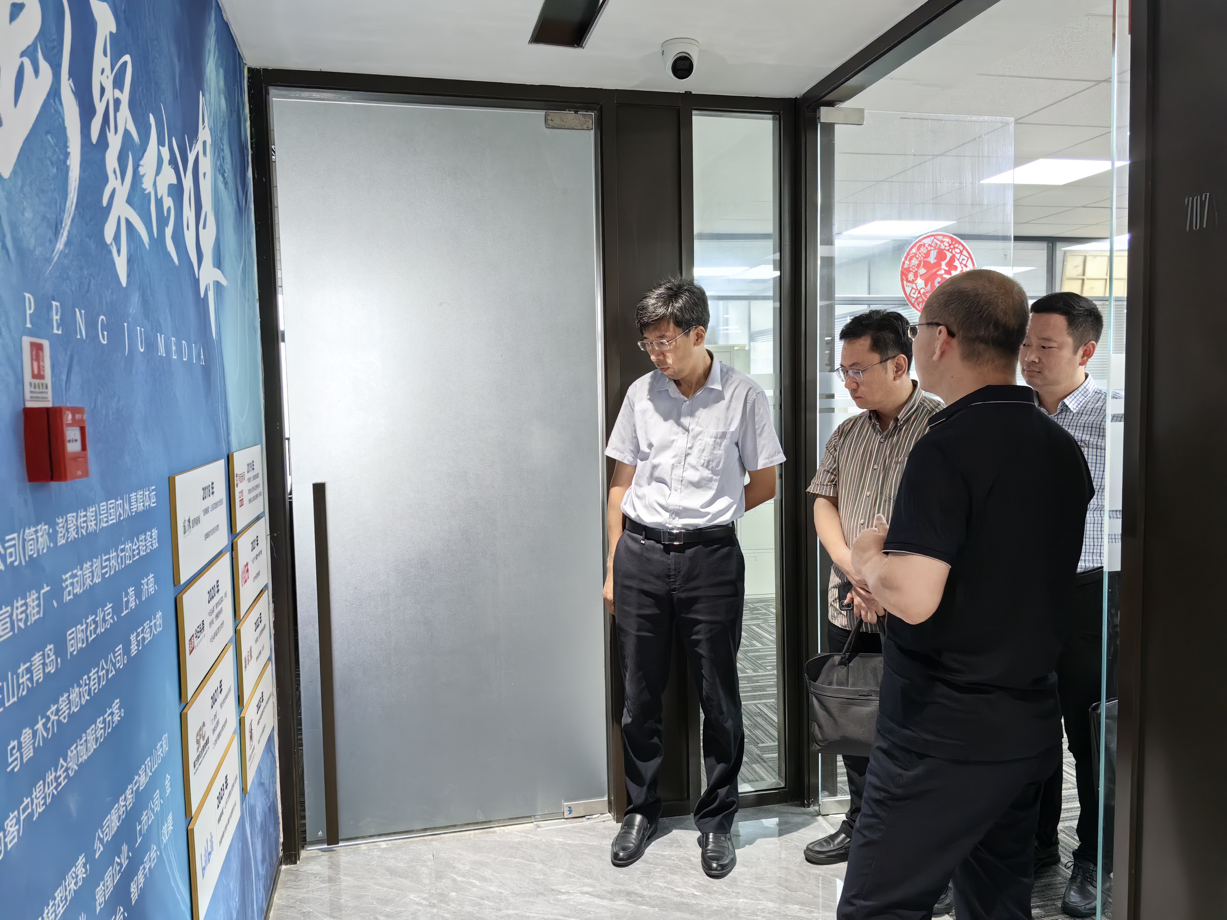 张洪坤一行实地参观了山东澎聚传媒、凤凰网青岛文化墙、演播厅及办公区域等场地,深入了解电影天堂、业务发展模式及社会服务成果等内容,看望今年入职澎聚传媒的应届毕业生,并与其亲切交流。史同坤就山东澎聚传媒、凤凰网青岛的基本情况、组织架构、运营模式、发展现状、核心竞争力等方面进行了介绍,双方就进一步整合资源、发挥优势特色,在项目合作、人才培养、学生实习就业、社会培训创收、产学研融合等方面进行研讨交流。