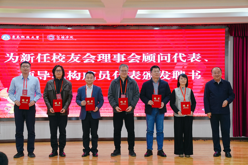 校友会换届的批复》,并为学院新任校友会理事会常务副会长史同坤、常务副秘书长冯谦颁发聘书。