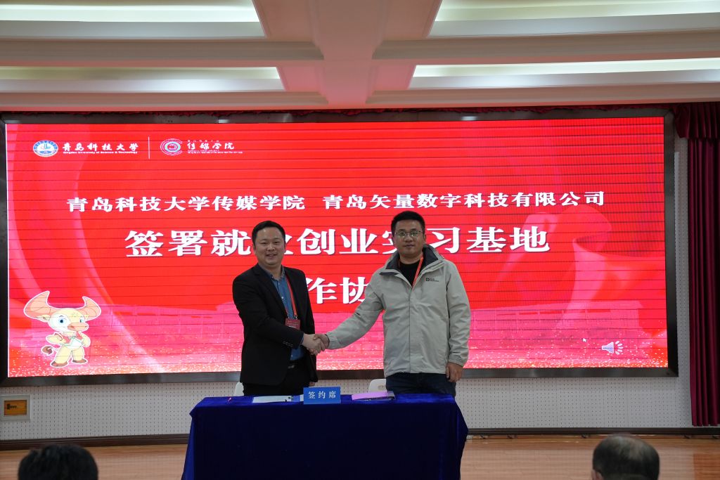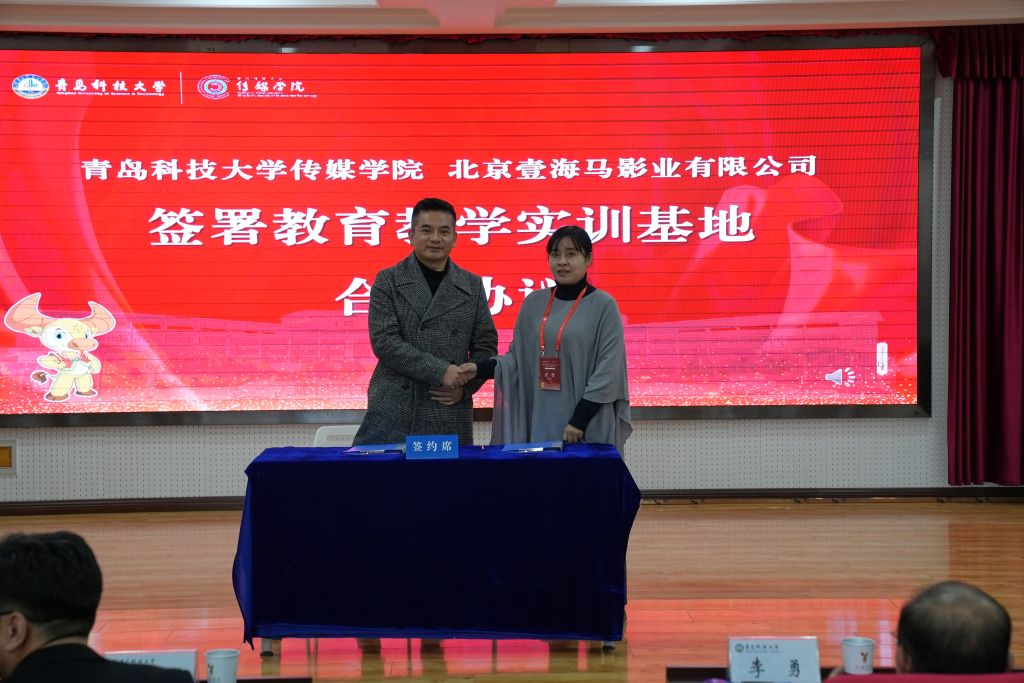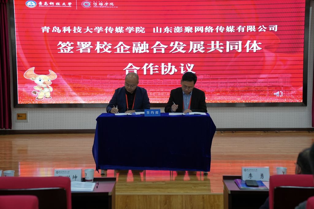 分别与山东澎聚网络传媒有限公司签署《校企融合发展共同体合作协议》,与北京壹海马影业有限公司签署《校企教育教学实训基地合作协议》,与青岛矢量数字科技有限公司签署《校企就业创业实习基地合作协议》,以“优势互补、资源共享、互惠双赢、共同发展”为原则,聚力实现学院教学科研与企业实践深度融合,不断提升人才培养质量。