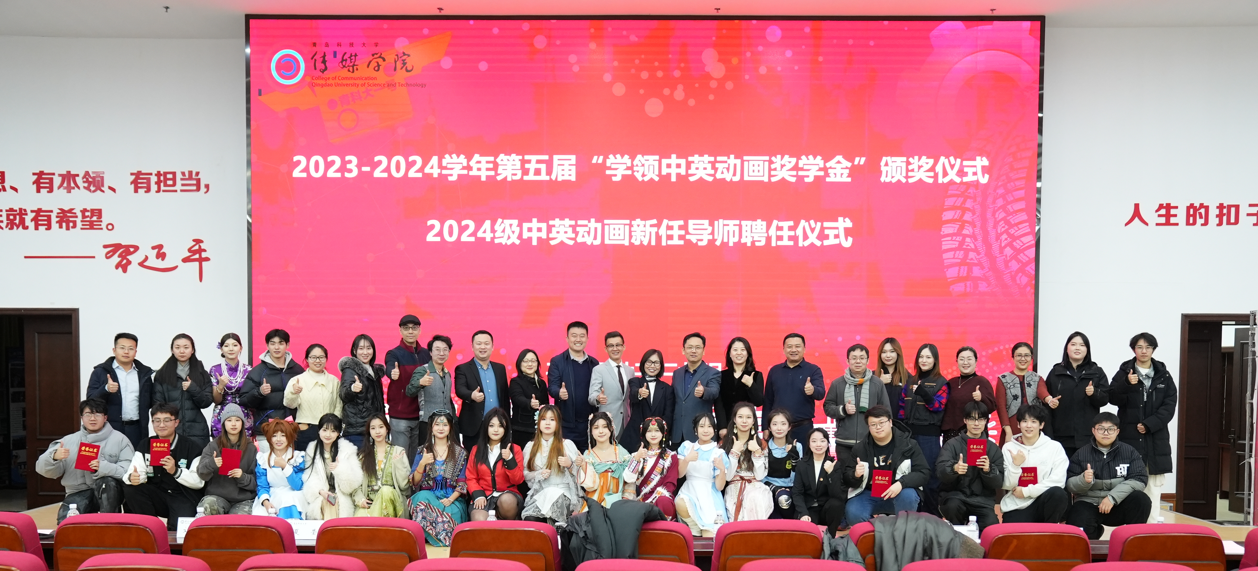 第五届“学领中英动画奖学金”颁奖典礼暨2024级中英动画新任导师聘任仪式在崂山校区团学报告厅举行,学领教育集团向电影天堂