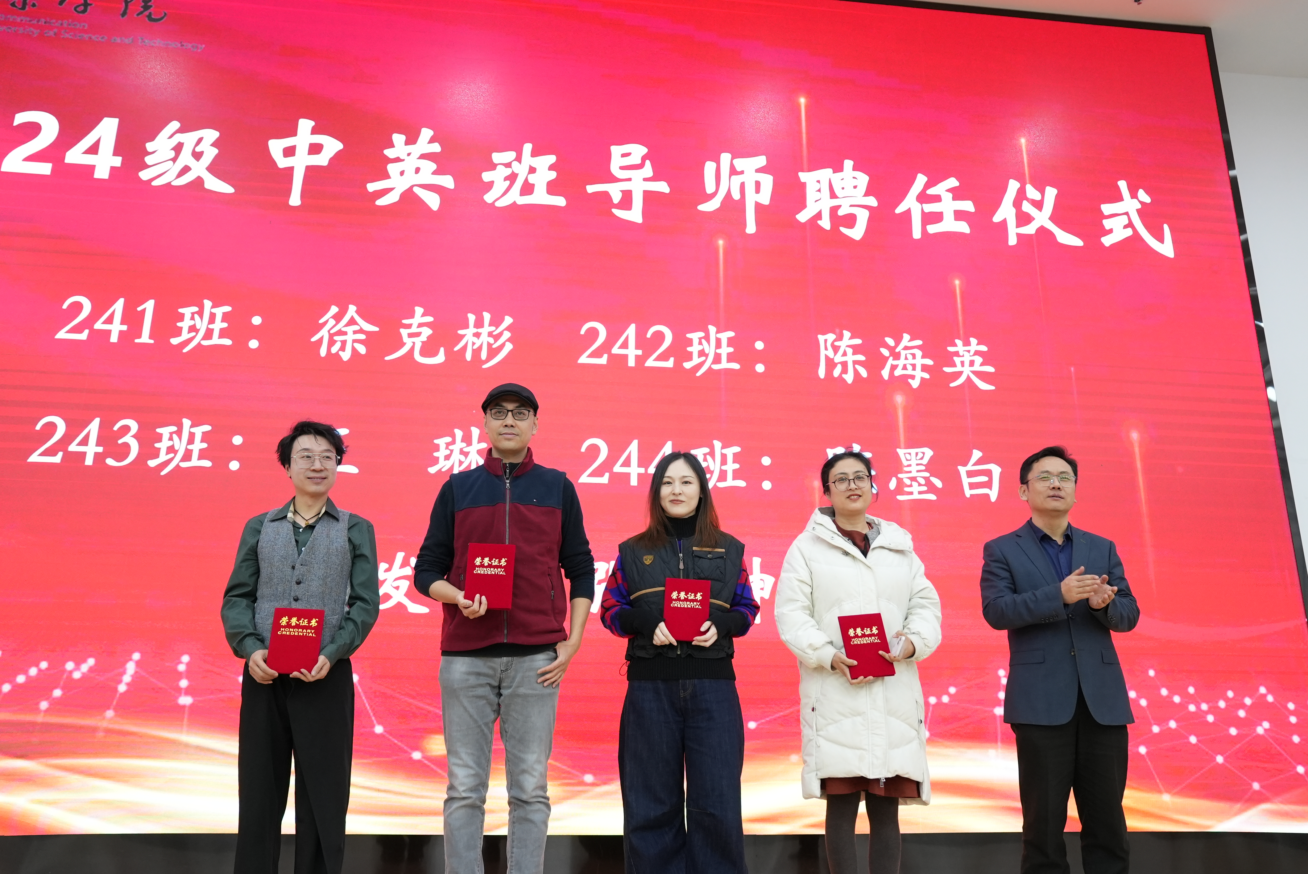 此次“学领中英动画奖学金”共颁发英语进步奖、布大创作潜力奖、优秀班级导师奖等13个奖项,旨在激励在英语、专业课学习,艺术创作等方面表现优异的学生,在学生教育管理服务中表现突出的班级导师,在就业指导上贡献卓越的教师等。典礼仪式上,中英动画班级导师代表、新老生代表分别发言,并聘任影视与动画系徐克彬、陈海英、王琳、陈墨白为2024级中英动画班导师。