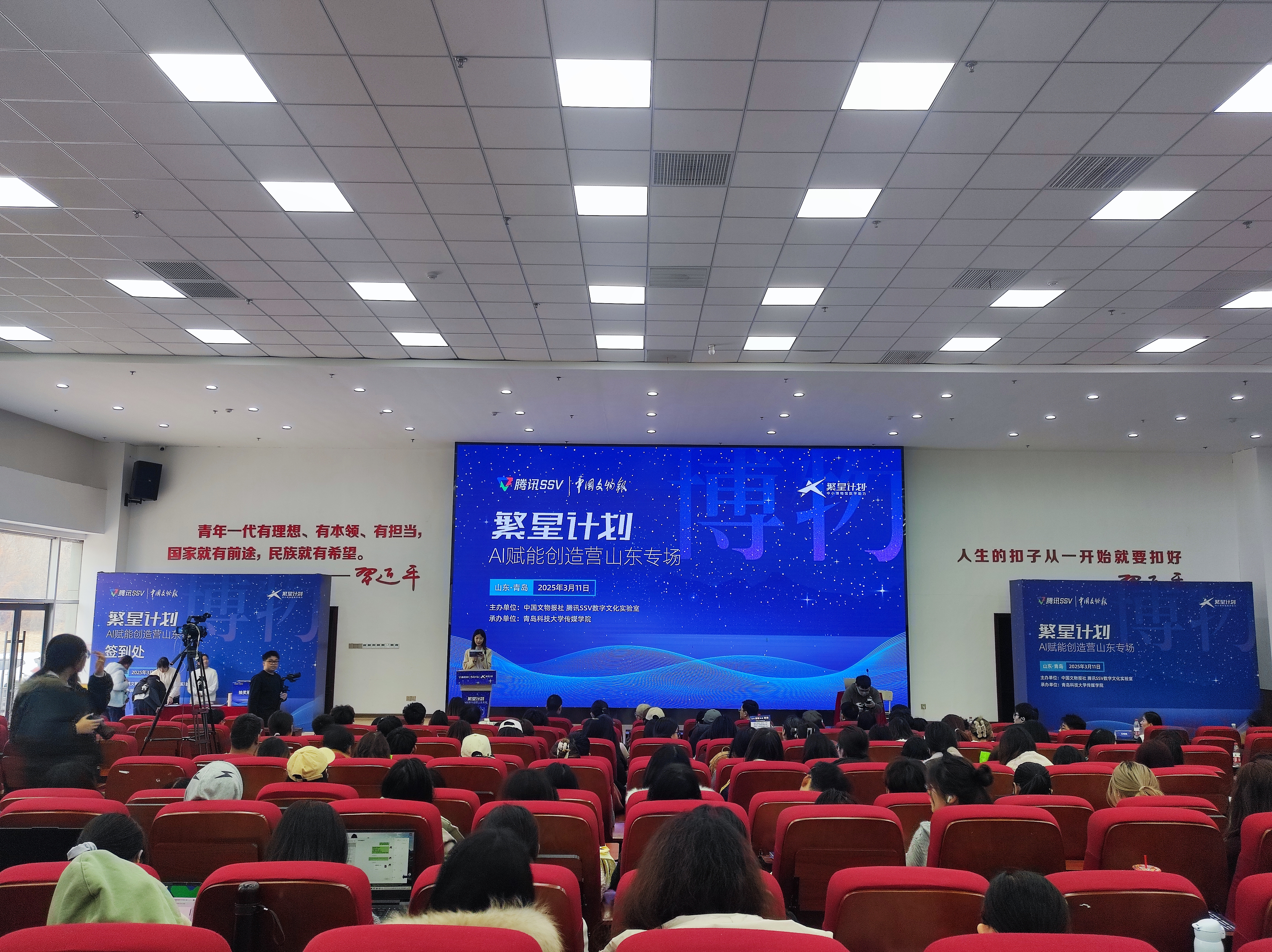 承办的“繁星计划”AI赋能创造营山东专场在崂山校区团学报告厅举办。青岛市博物馆学会会长刘庆、腾讯云生态专家张斌及相关资深媒体人出席活动。学校党委宣传部、电影天堂