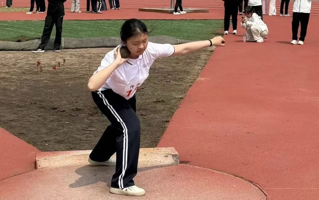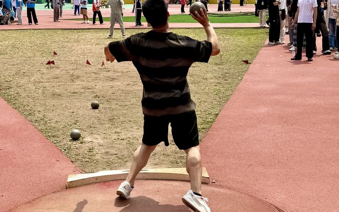沉甸甸的铅球在手中凝聚力量,