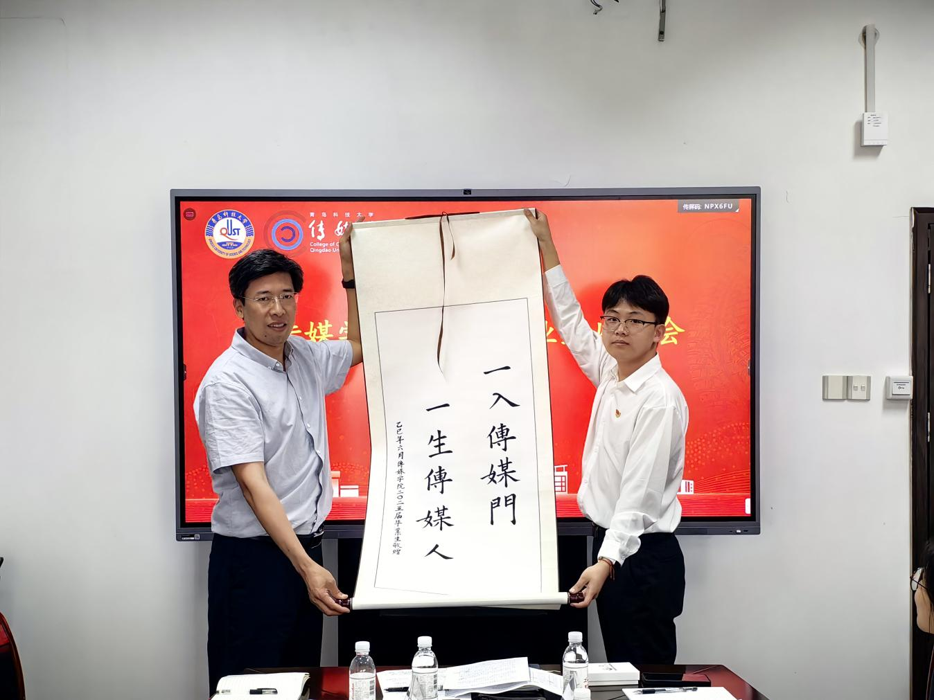 会上,毕业生代表逐一发言,表达了对学院关心培养和老师悉心栽培的感谢,并结合自身学习科研、工作生活和求职体会为学院发展提出了建设性意见建议;与会领导老师与同学们互动交流,回应关切,指导毕业生职业发展,鼓励毕业生坚定信心,保持韧劲,坚持锻炼,保持阳光心态,积极为中国式现代化贡献传媒力量。毕业生代表刘嘉玮向学院敬赠“一入传媒门,一生传媒人”的书法作品,刘志国代表学院接受毕业生赠送,并向毕业生代表回赠定制文创盒。