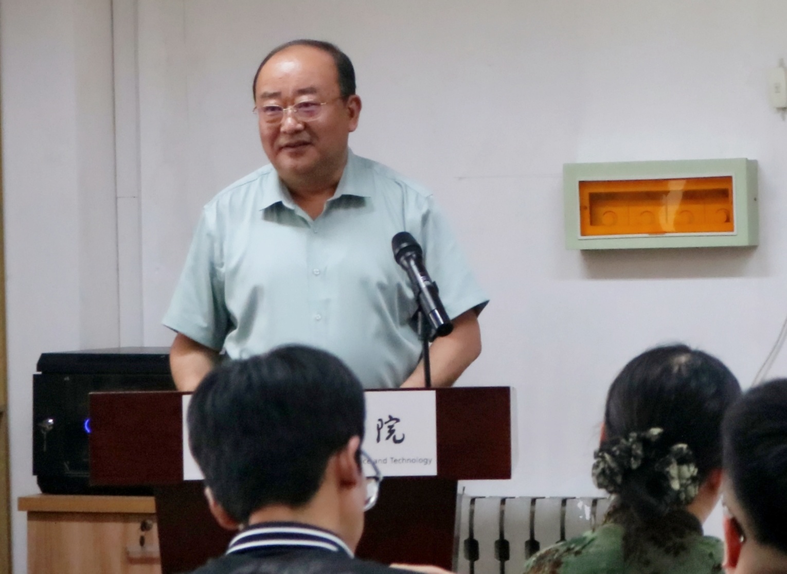 党政领导和全体教职工参加会议。会议由学院党委副书记兼副院长刘海波主持。