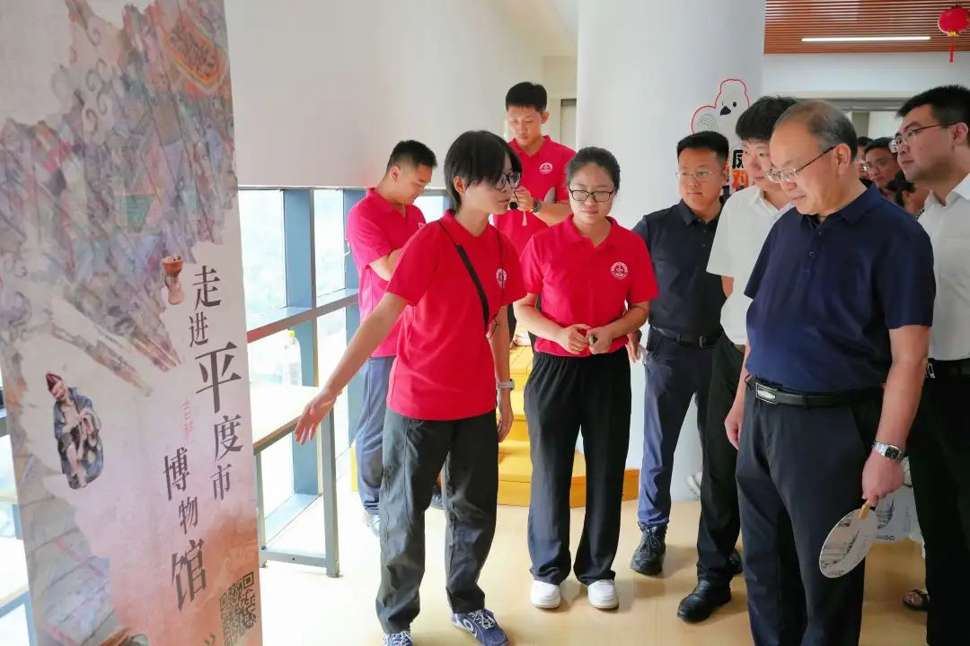 7月18日,学校党委常委、副校长丁林,学生工作处处长王丽,团委书记刘跃宁,平度市政府副市长赵瑞阳,共青团平度市委书记张新宇等一行前往平度市博物馆,走访慰问电影天堂