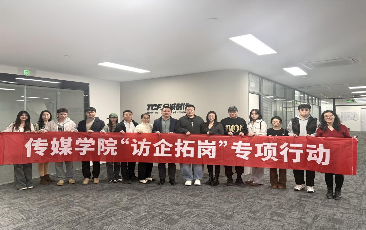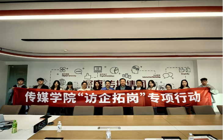党委副书记兼副院长刘海波、团委副书记兼学工办副主任金莹莹、毕业生辅导员刘福民与毕业生代表前往深度传播集团、青岛全诚时代影视文化传播有限公司开展访企拓岗专项行动,受到了青岛市微短剧协会会长、青岛全诚时代影视科技有限公司总经理梁晓栋,深度传播集团人事经理李钰等热情接待。