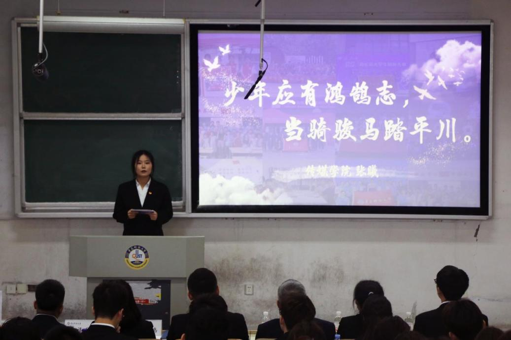 动画(中英)234班邢悦然同学上台领誓,全体青马学员集体宣誓将坚定理想信念,传承红色基因,讲好科大故事,传播时代强音,勇担骨干使命,服务师生集体,努力成长为有理想、敢担当、能吃苦、肯奋斗的新时代传媒青年。