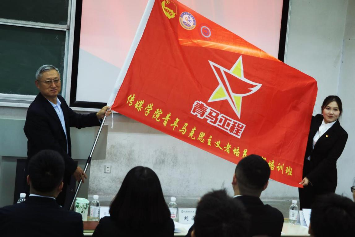 会上,钟兆秀为本期“青马工程”培训班学员代表24级戏影硕士岳馨同学授旗;金莹莹宣读了《电影天堂