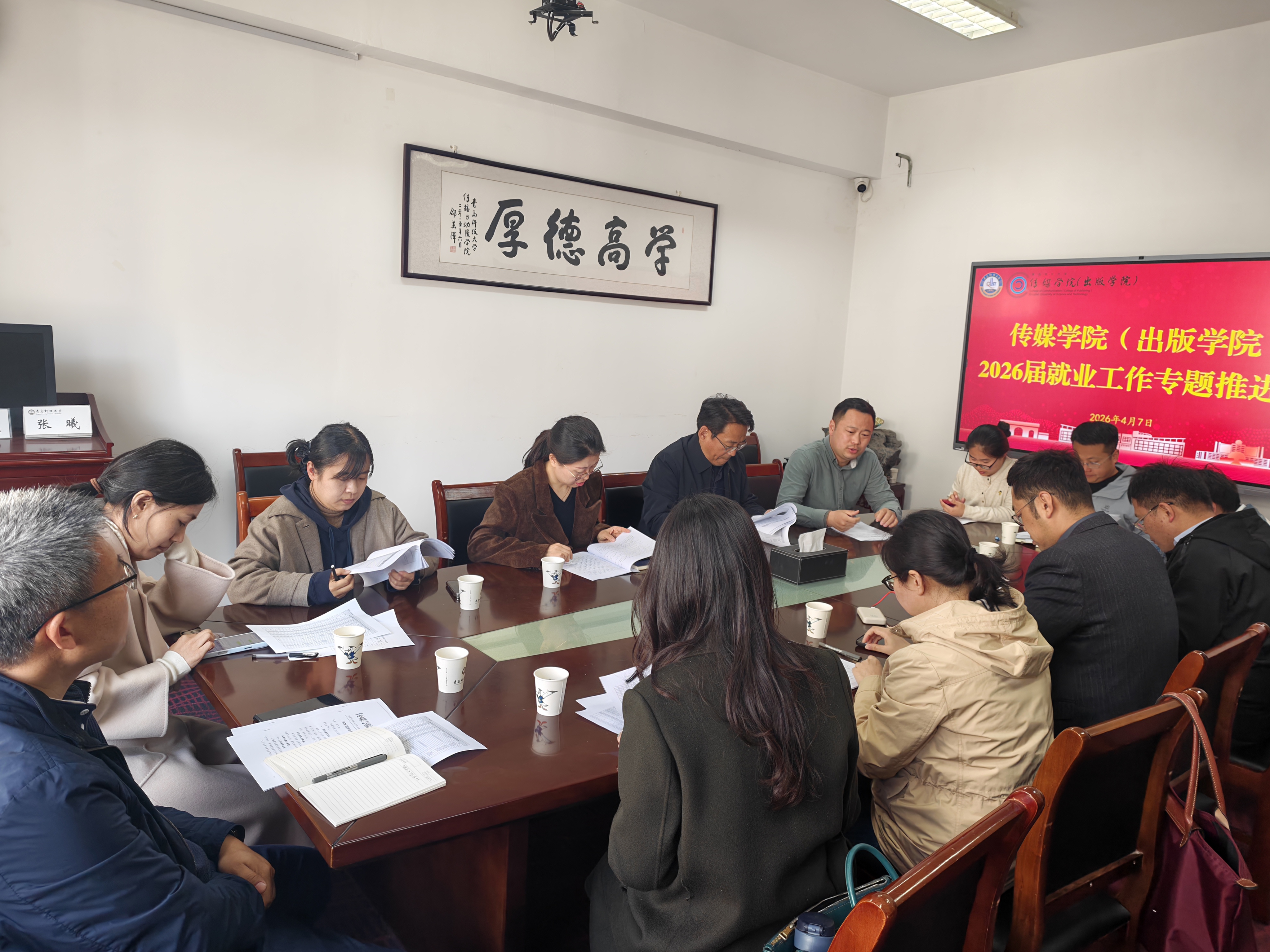 召开2026届毕业生就业工作专题推进会,传达学校就业工作要求,研判当前就业形势,全面推进毕业生就业工作。学院党委书记孙洪广、副院长(主持工作)石晨旭等领导班子成员,各系党支部书记、系正副主任,毕业生辅导员等参加会议。会议由学院党委副书记兼副院长刘海波主持。