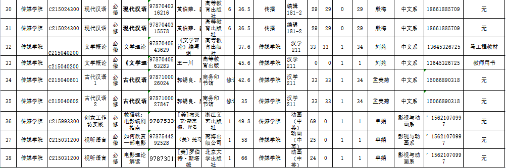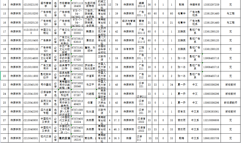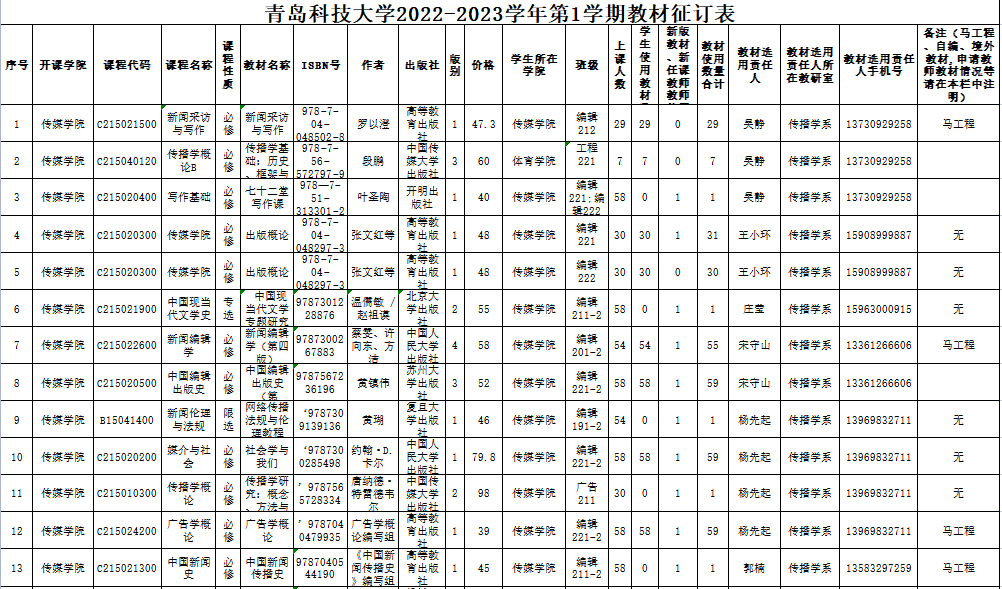 青岛科技大学2022-2023学年第1学期教材征订表