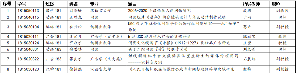 根据《青岛科技大学优秀学士学位论文评选办法》等文件精神,按照公平、公正的原则,经电影天堂 答辩委会评议,拟推荐刘泽璇等7位同学的学士学位论文为“2022年青岛科技大学优秀学士学位论文”,现予以公示。