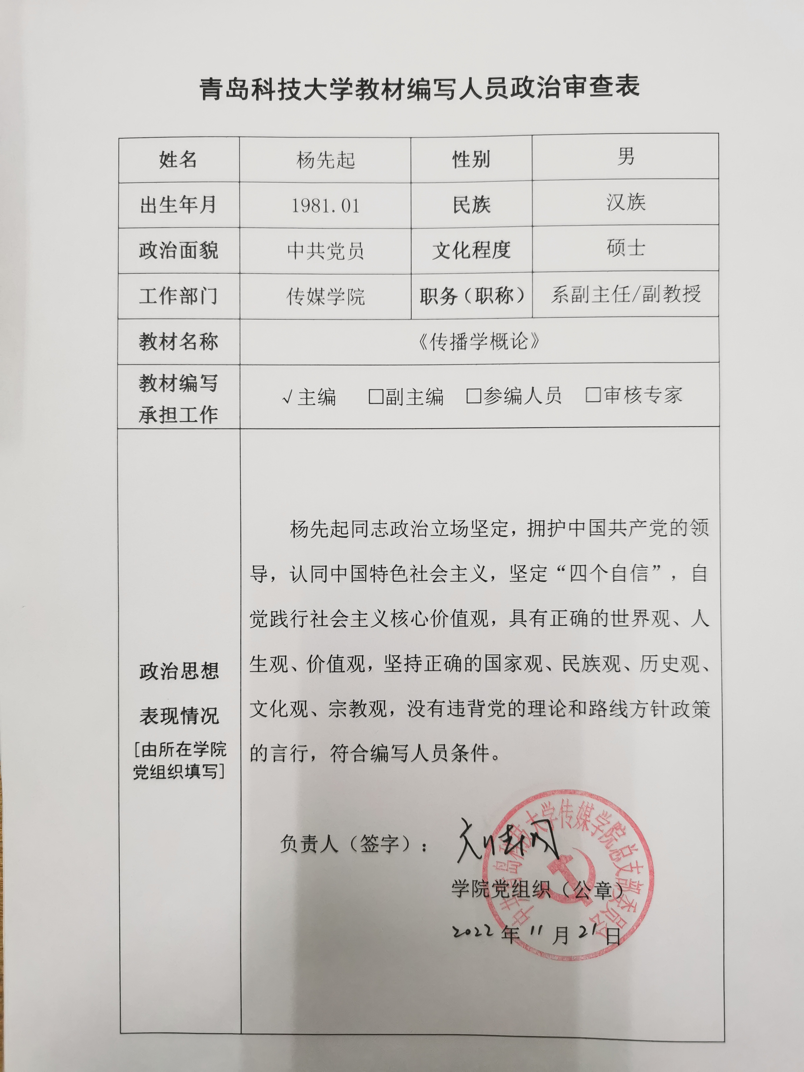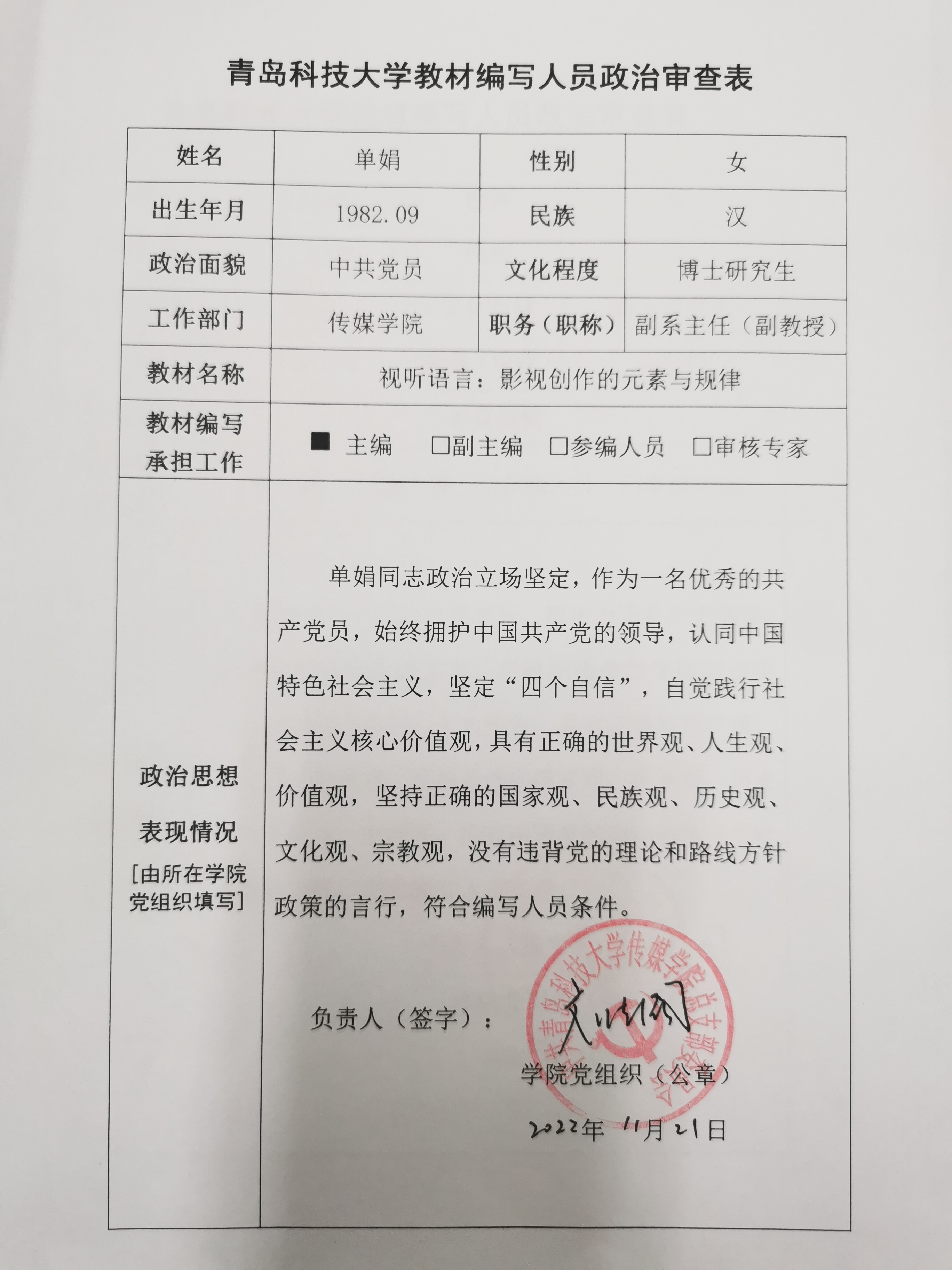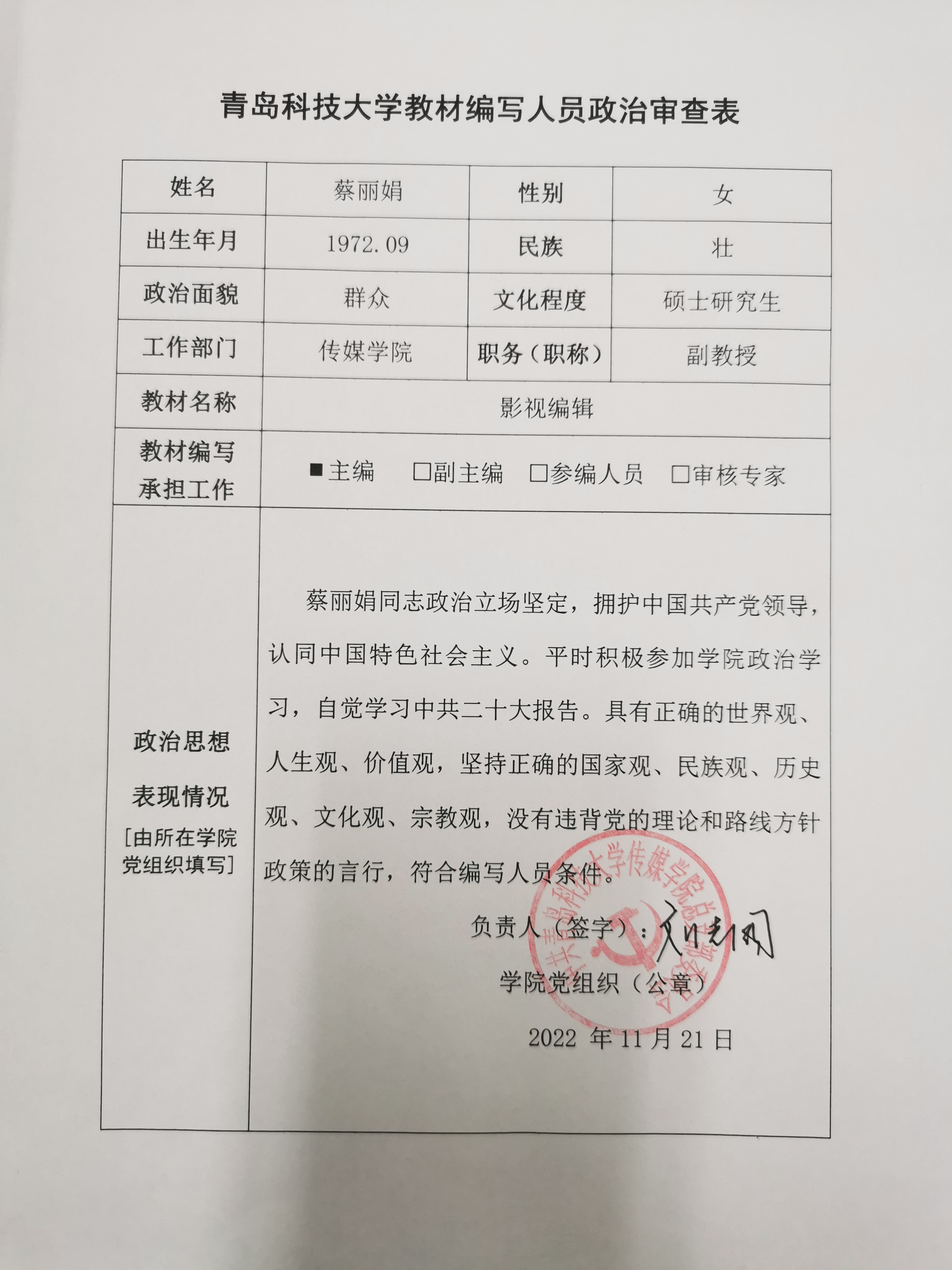 电影天堂 2022年新形态教材建设项目申报人员政治审查情况公示