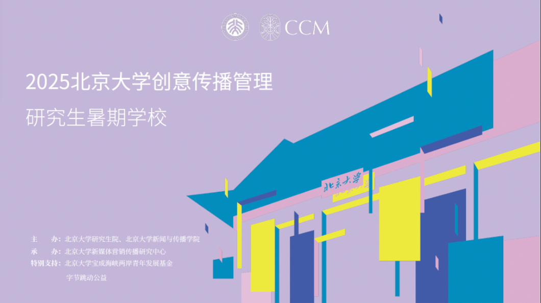 此次暑期学校由北京大学研究生院、北京大学新闻与传播学院主办,北京大学新媒体营销传播研究中心承办。CCM暑期学校由北京大学新媒体营销传播研究中心于2014年发起,是经北京大学研究生院批准立项的北京大学研究生教育创新项目之一。截至目前,北京大学创意传播管理研究生暑期学校已开办11年,已有海内外近九百名师生学员。