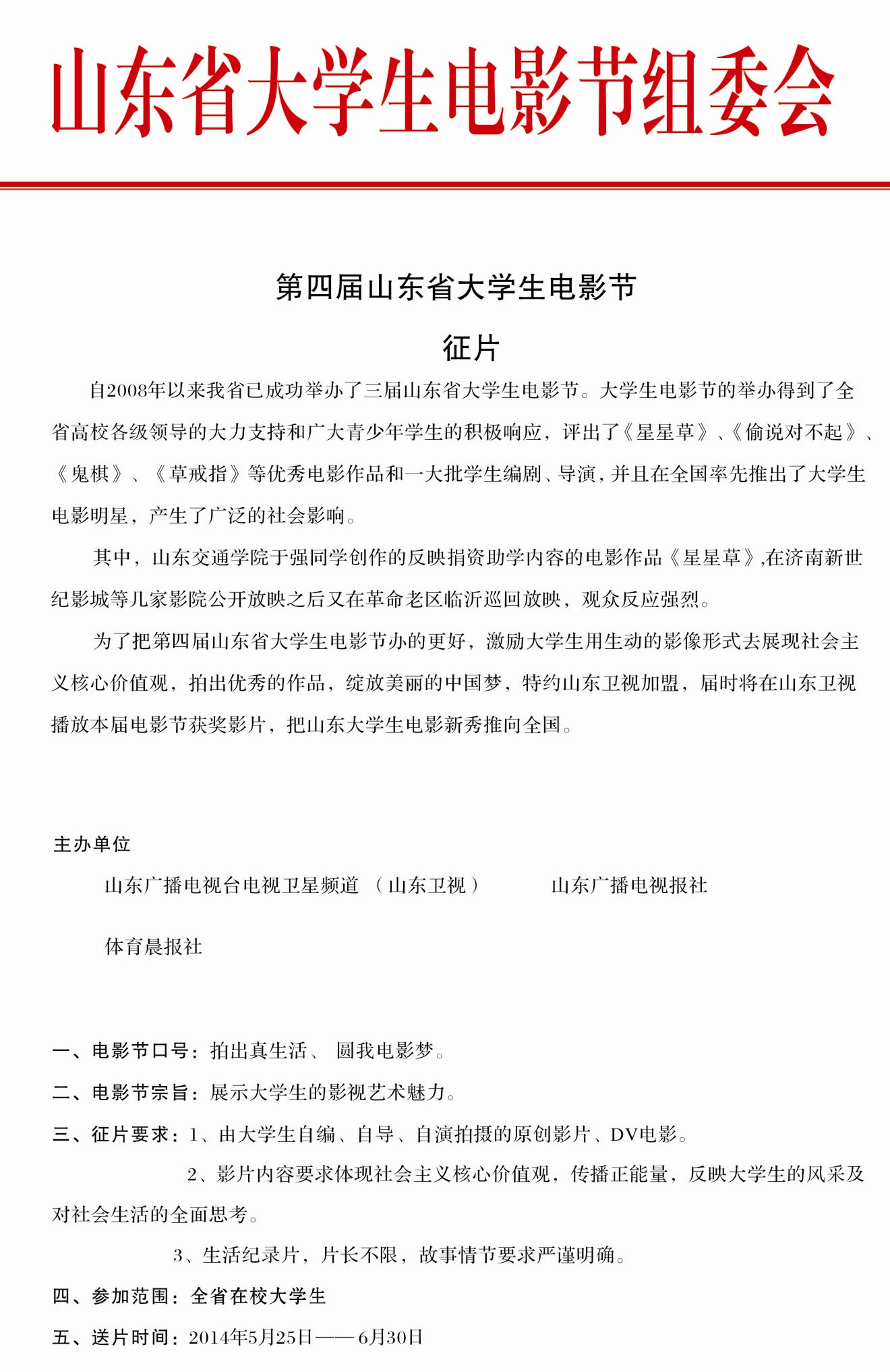第四届山东省大学生电影节-6月30日截至-电影天堂