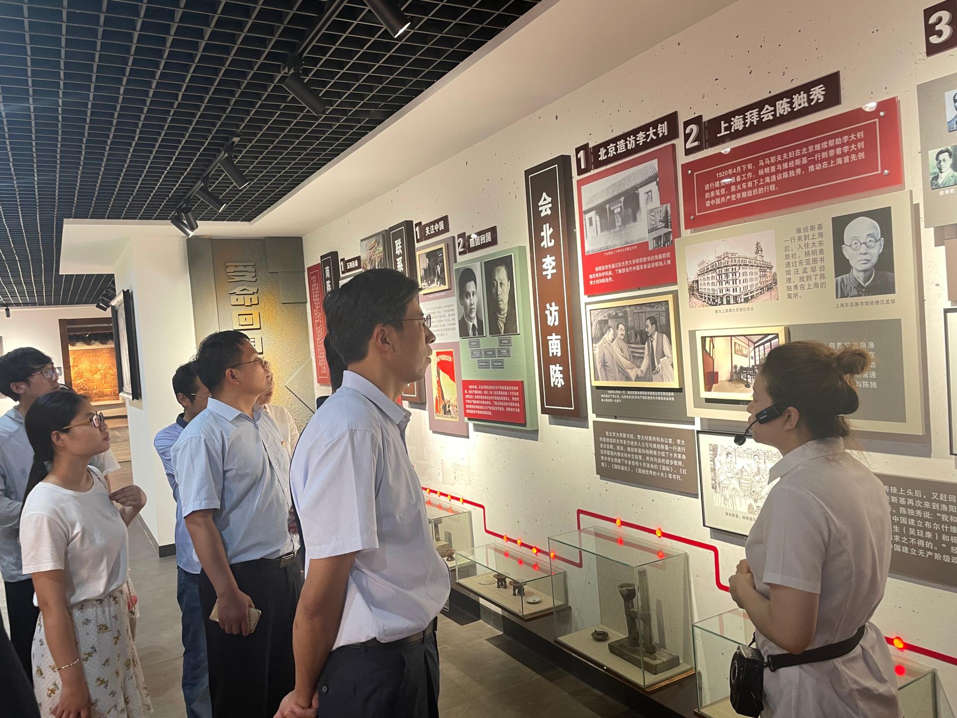 下午,学院党员师生来到平度杨明斋故居和杨明斋事迹陈列馆,瞻仰革命烈士,弘扬革命精神。在杨明斋烈士塑像前,党员们整齐列队,神情肃穆。学院党总支书记刘志国向烈士献花,带领大家鞠躬,表达对烈士的缅怀之情和无限敬意。随后,党员师生们依次参观了“命运多舛 闯俄谋生”“加入俄共 投身革命”“受命回国 推动建党”等5个主题展馆,全面了解杨明斋烈士波澜壮阔的一生。