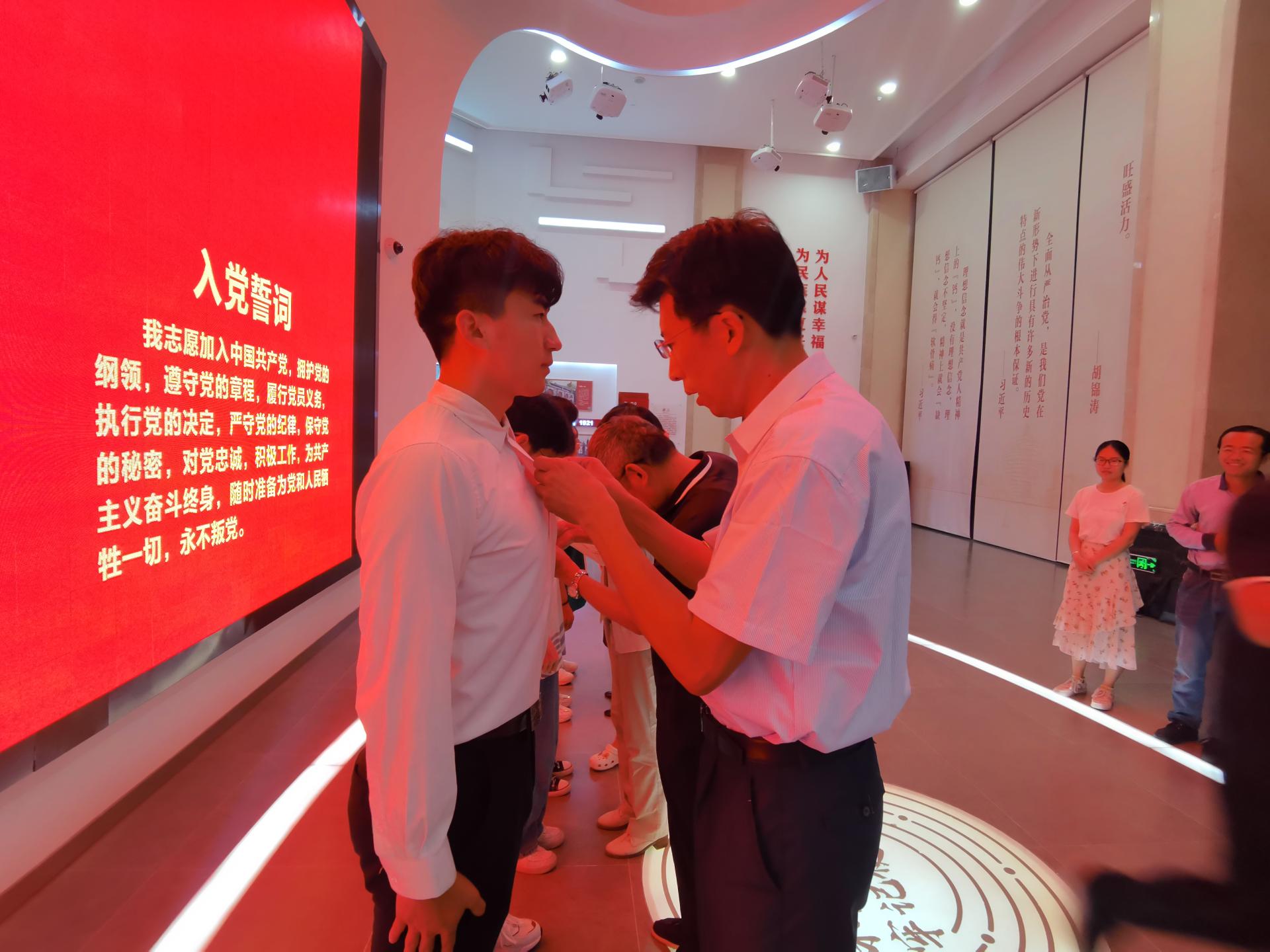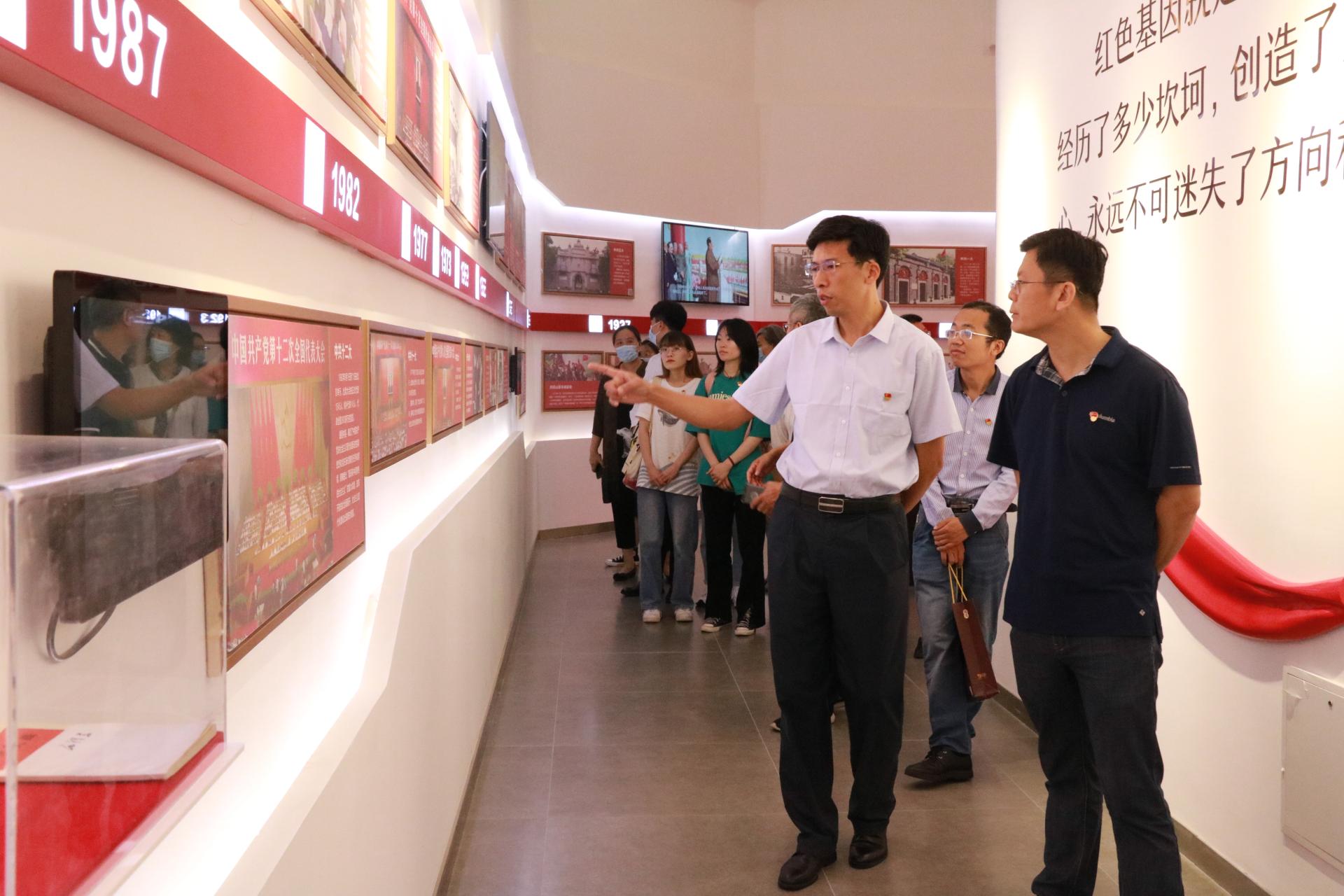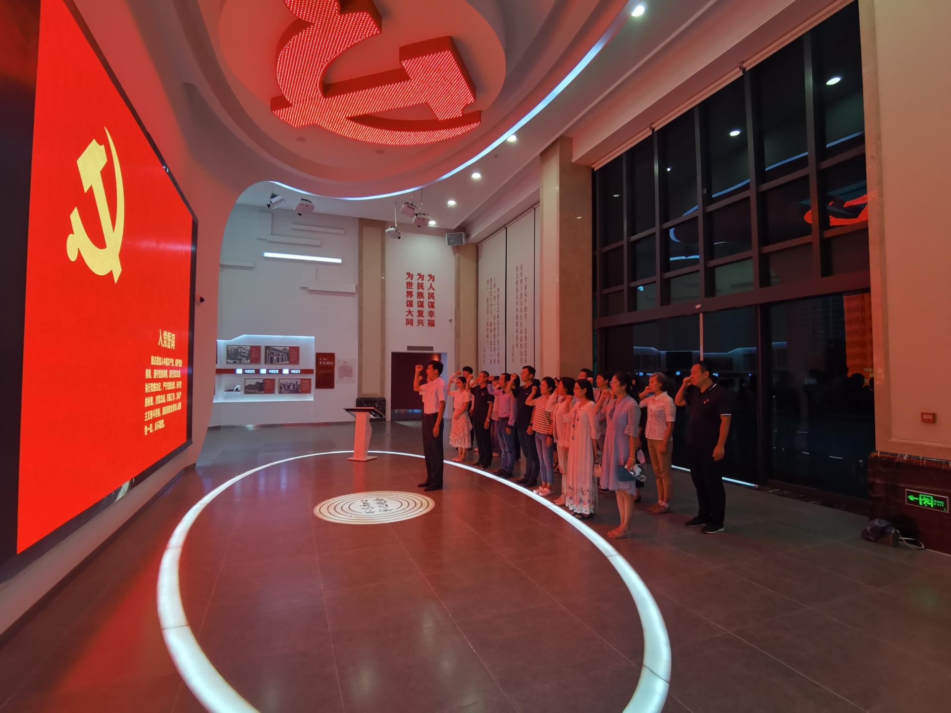 党员师生代表来到李沧区党员政治生活馆参观学习。在展馆大厅前,学院党总支书记刘志国面向党旗,举起右手,带领大家重温入党誓词。“我志愿加入中国共产党,拥护党的纲领,遵守党的章程….,为共产主义奋斗终身,随时准备为党和人民牺牲一切,永不叛党。”大家用铮铮誓词宣示着自己的初心使命和为党的事业奋斗终身的决心。
