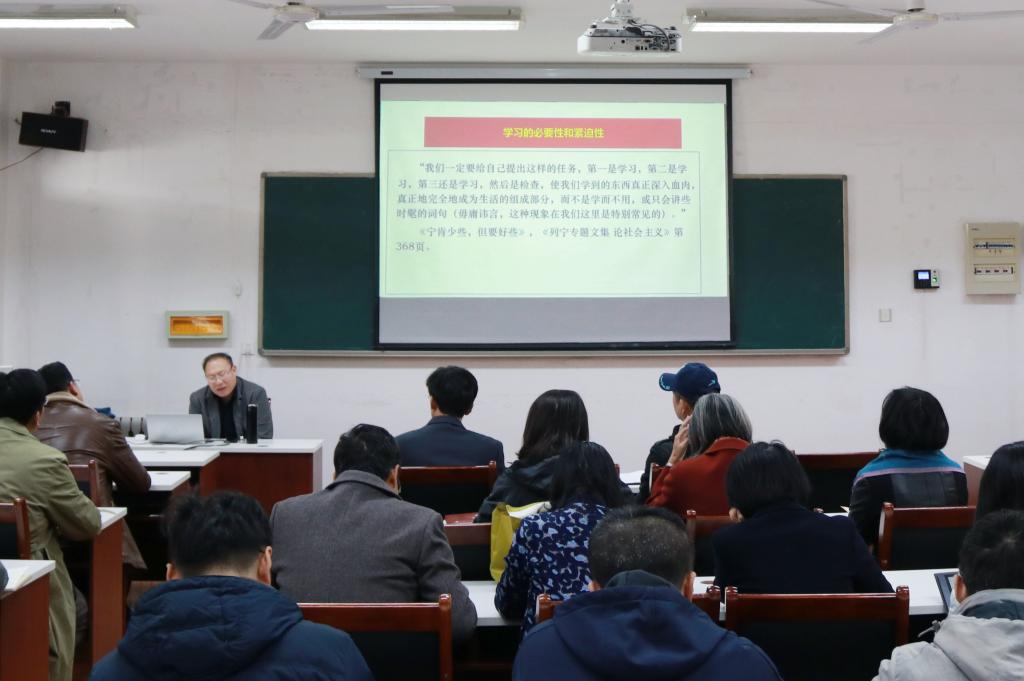 全体教职工参加报告会。