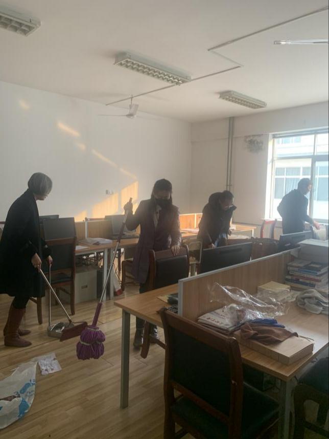 在各系党支部书记的带领下,大家积极响应、迅速投入、热情高涨,几个小时的忙碌,各系办公场所变得桌椅整齐、窗明几净、环境温馨。学院为各系购置的绿植和书架置于其中,生机盎然。