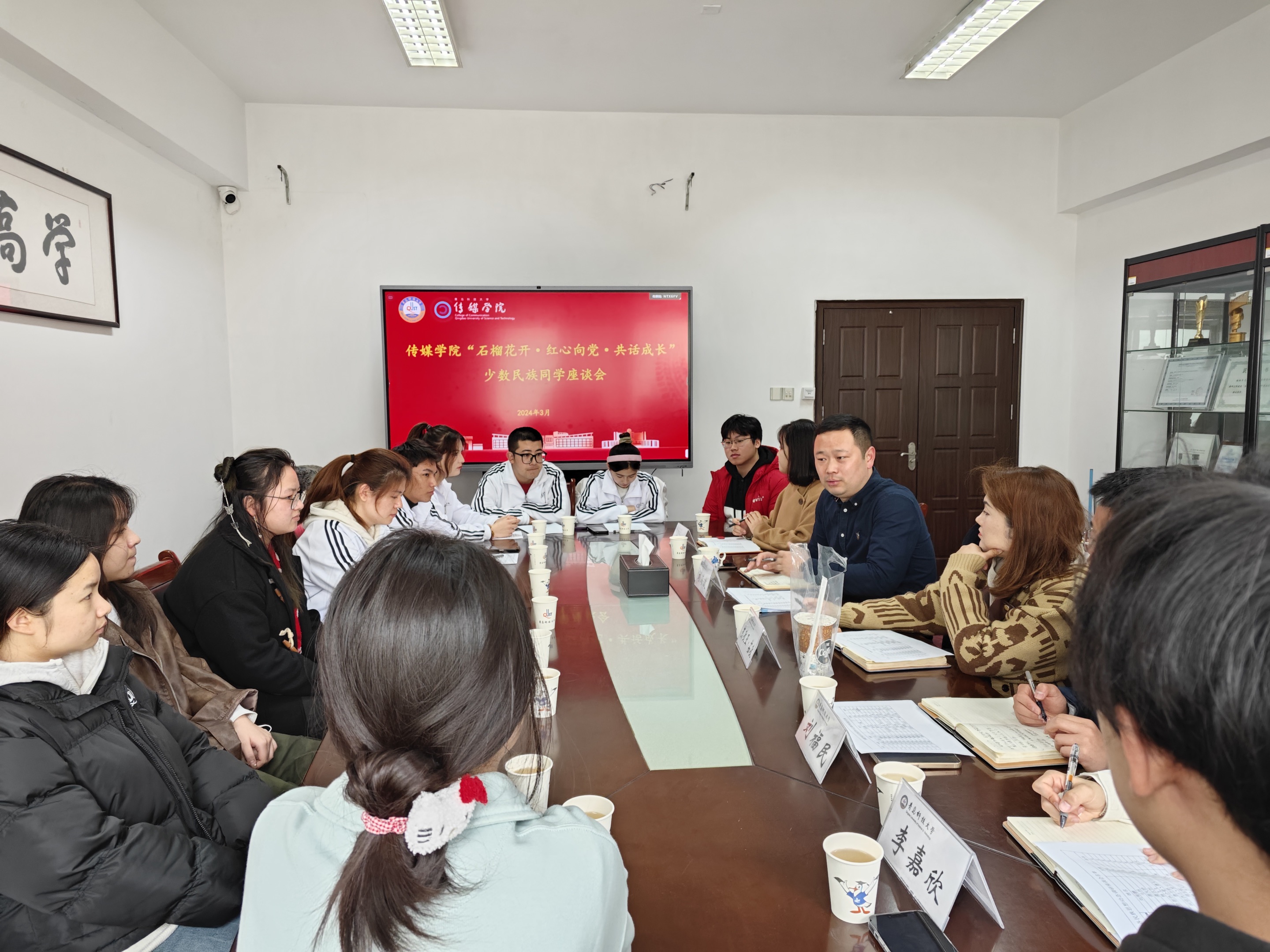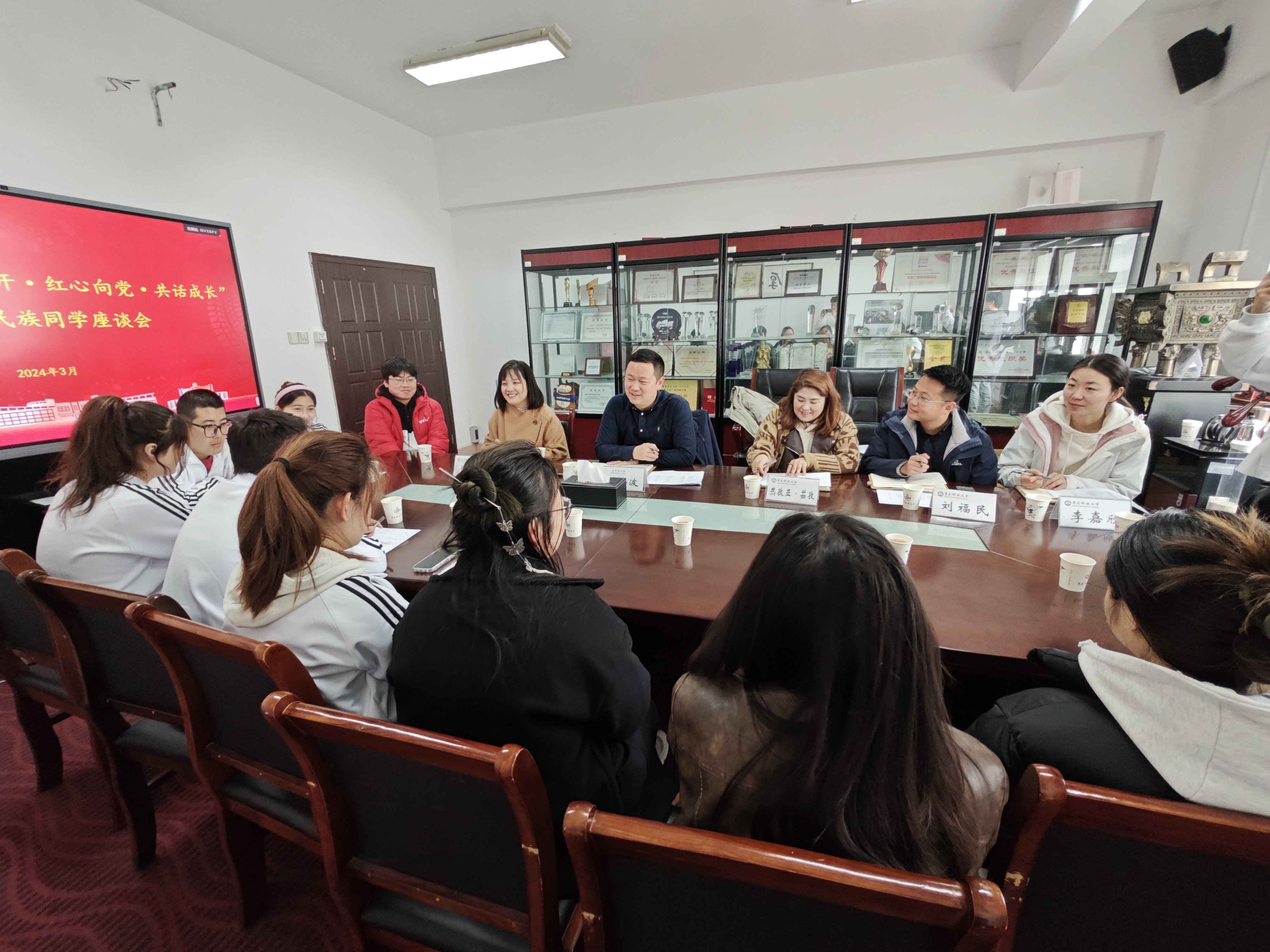在315会议室举行“石榴花开·同心向党·共同成长”少数民族学生座谈会。学院党委副书记兼副院长刘海波,学校少数民族学生专职辅导员热孜亚·茹孜,各年级辅导员及各民族学生代表参加座谈。会议由辅导员李嘉欣老师主持。