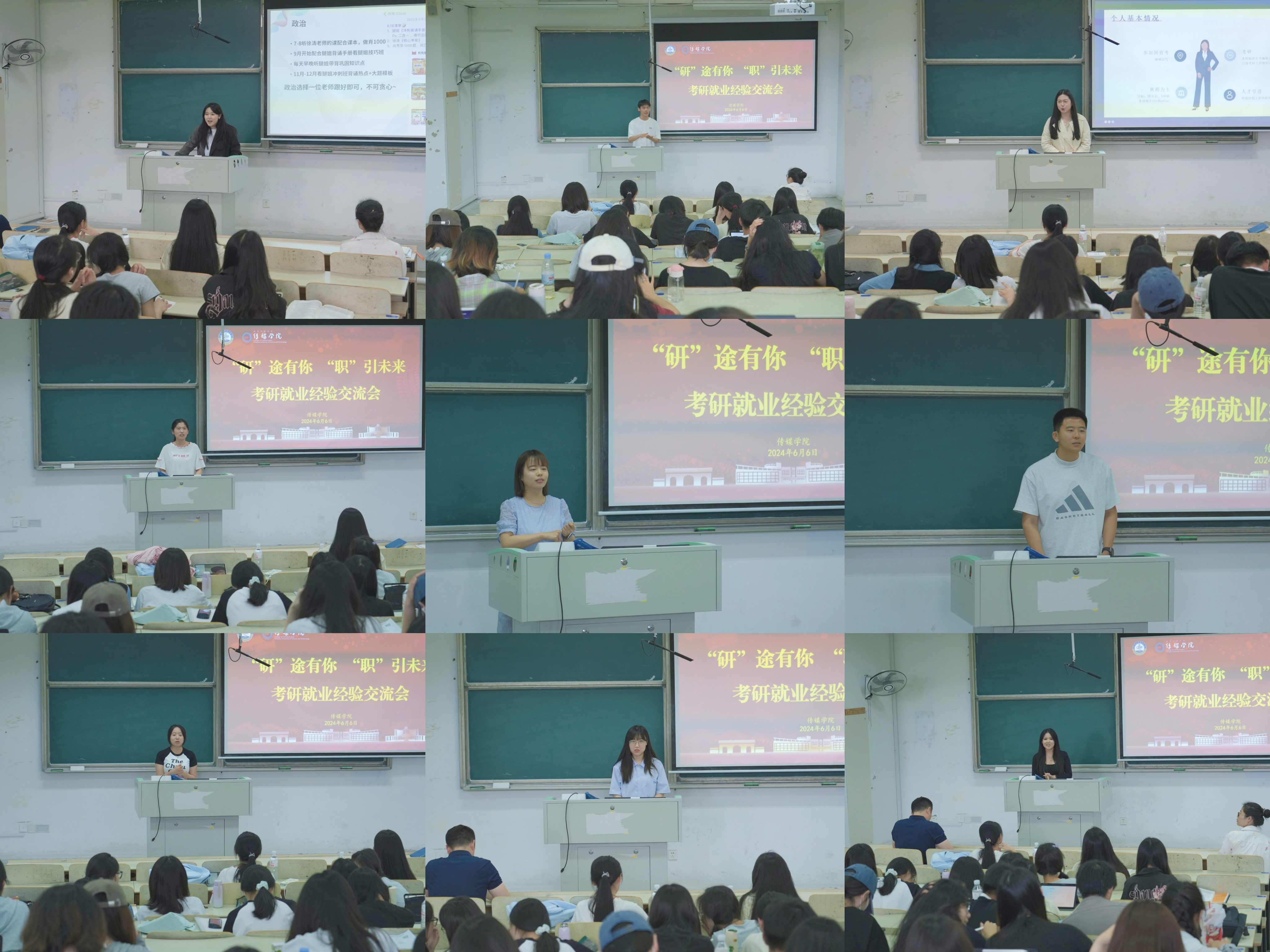 分专业举办“‘研’途有你‘职’引未来”系列考研、就业经验分享会。学院党委副书记兼副院长刘海波,团委副书记兼学工办副主任、21级本科生辅导员金莹莹出席会议。会议邀请到学院20位2024届优秀毕业生代表,他们立足专业实际从考研、就业方面进行经验分享和答疑交流。
