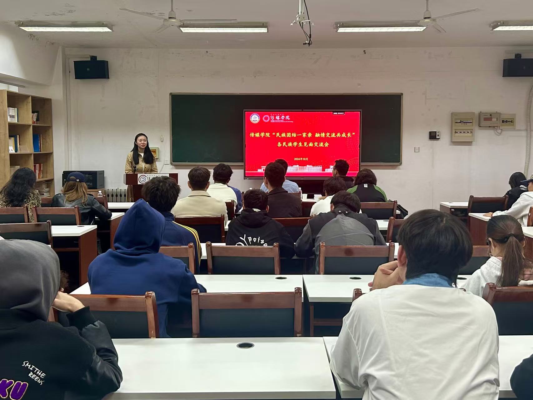 在310会议室召开“民族团结一家亲 融情交流共成长”各民族学生见面交流会。学校少数民族辅导员凯撒尔·买买提,学院党委副书记兼副院长刘海波、辅导员李嘉欣,以及各年级学生代表近70人参加会议,会议由李嘉欣主持。