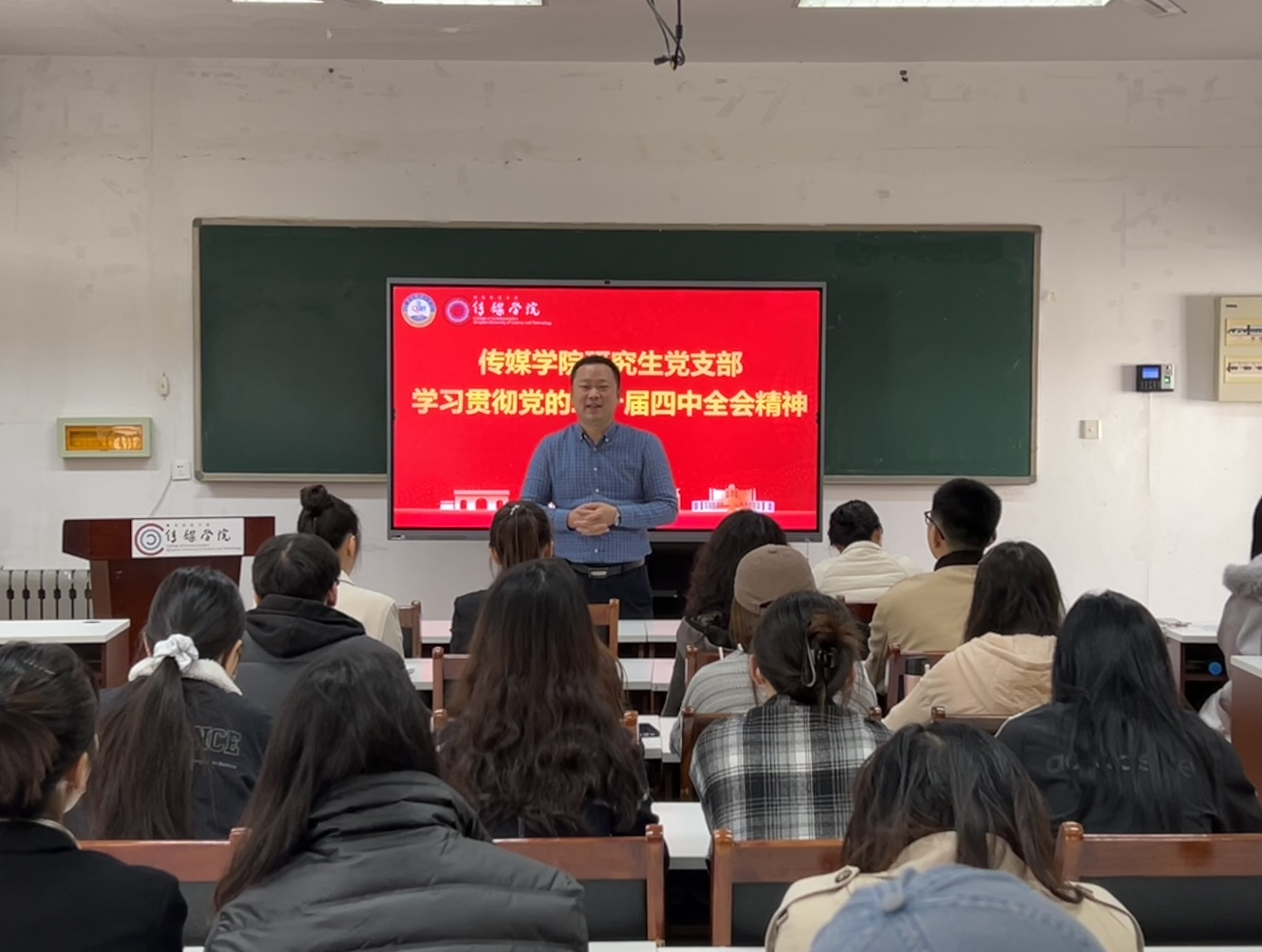 党委副书记兼副院长刘海波作专题辅导。他从历次全会的历史脉络出发,系统阐释了“一中”至“四中”全会的概念内涵与发展逻辑,引导党员深刻理解党的理论创新与实践演进,增强对中国特色社会主义制度发展规律的认识把握。他强调,全体党员要胸怀“国之大者”,在专业学习与社会实践中厚植家国情怀,主动担当作为,将个人理想融入国家社会发展大局。结合传媒学子实际,他鼓励党员同志积极把握就业实习机遇,锤炼专业本领;同时要发挥党员先锋模范作用,带头关心关爱身边同学,在思想引导、学业帮扶、心理支持等方面主动作为,共同营造安全稳定、积极向上的学院氛围。