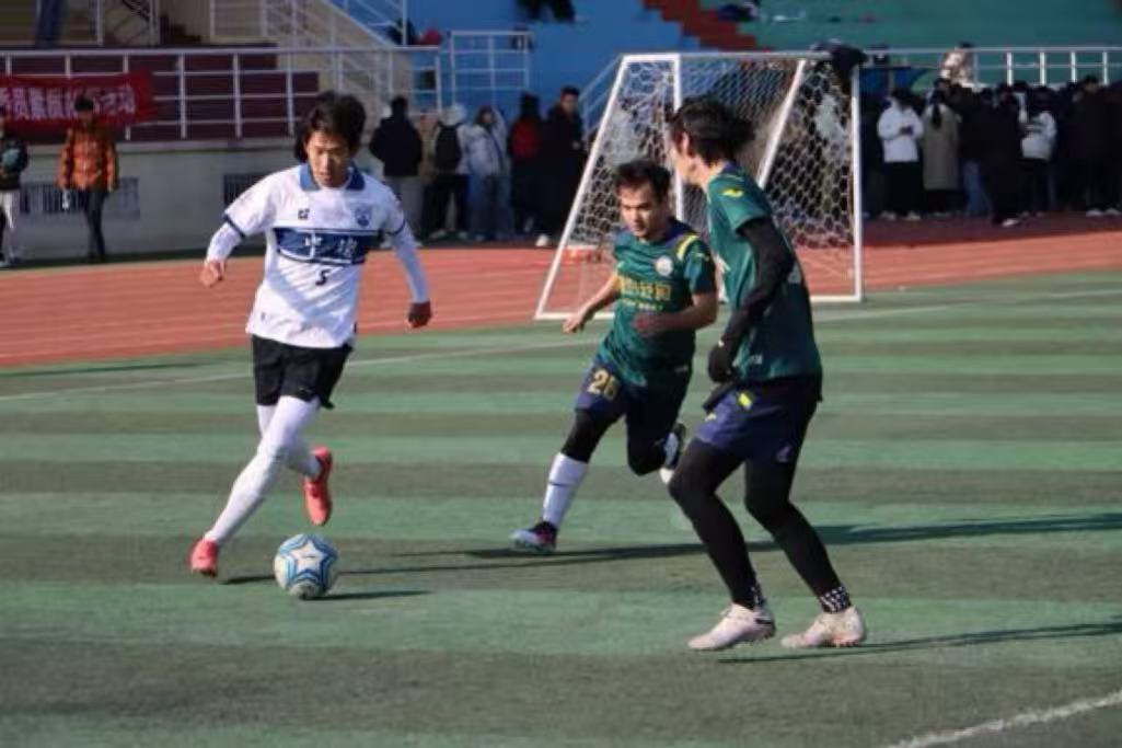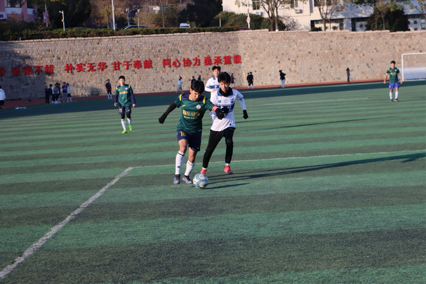 在与数艺学院的激烈角逐中,赛场上足球员们在绿茵场上奔跑,他们以娴熟的技巧和默契的配合,不断向对方球门发起冲击。