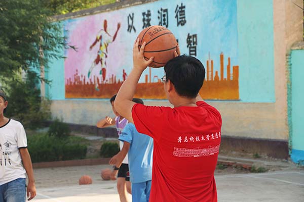 莒南县涝坡镇中心小学办学多年,业绩辉煌。2017年,涝坡镇中心小学作为足球特色学校发展势头迅猛,为进一步实现学校的和谐发展,把学校做大、做强、做优,学校的领导班子十分重视孩子们的身心健康,在教学方面注重德智体美劳全面发展。崔永峰校长表示,孩子们最需要的是心灵的呵护,而体育运动可以实现孩子们身心健康的全面发展。目前学校的活动以社团训练为主,并且积极参加县内市内的各项比赛,均取得了优异的成绩。此次青岛科技大学传播与动漫学院赴临沂的志愿活动也十分重视体育方面的培训,在临沂之行中,每天的体育训练是必不可少的,志愿者带着孩子们在阳光下打篮球、踢足球,享受体育运动的乐趣。志愿者们通过打友谊赛的方式将孩子们集中在一起,既锻炼了身体素质,又培养了孩子们的集体意识。在这些天的体育训练中,无论是志愿者还是孩子们,都获得了新知与激情。