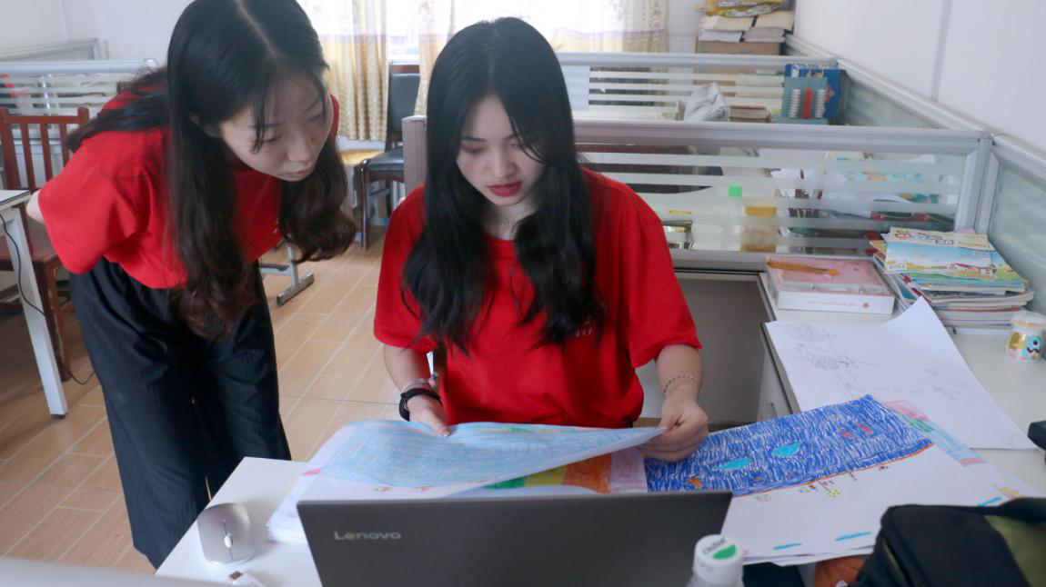 的志愿者们通过15日下午与孩子们的接触,对活动的开展有了信心。所以在第一天“我眼中的家乡”板块圆满结束之后,16日这一天绘画支教活动进入到了第二个板块——“我眼中的海洋世界”。