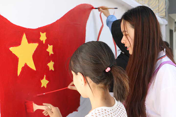 下午,志愿者们和青岛大学以及山东财经大学的同学们一起开始了社区的文化墙绘制工作,文化墙以“党建在创新中不忘初心,社区在奋斗中谱写华章”为口号。大家通力合作绘制墙壁,使墙绘和社区文化相得益彰,让人民在生活中感受到国家的关怀和温暖。