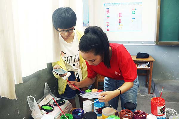今天下午13:30,志愿者们顺利开展了各种课程活动,许多小朋友从家里赶到学校来参加这次活动,留下一段美好的回忆。首先志愿者们开展了对手语操《明天,你好》的学习,孩子们对手语操都很有兴趣,也学习的很认真,手语操的教授也是让孩子们知道聋哑人这一群体的存在,也可以让孩子们学会善良,用自己的行动回报社会。随后志愿者们开展了手绘t恤的活动,孩子们可以去挑选颜色去绘制自己喜欢的卡通人物。有的画小猪佩琪,有的画小熊,有的画皮卡丘,在志愿者们和小朋友的共同努力下,慢慢绘制出了一幅幅美丽而又多彩的衬衫。这些活动不仅可以拉近志愿者们与小朋友之间的距离,也可以让志愿者们更加深入去了解孩子们的内心世界。