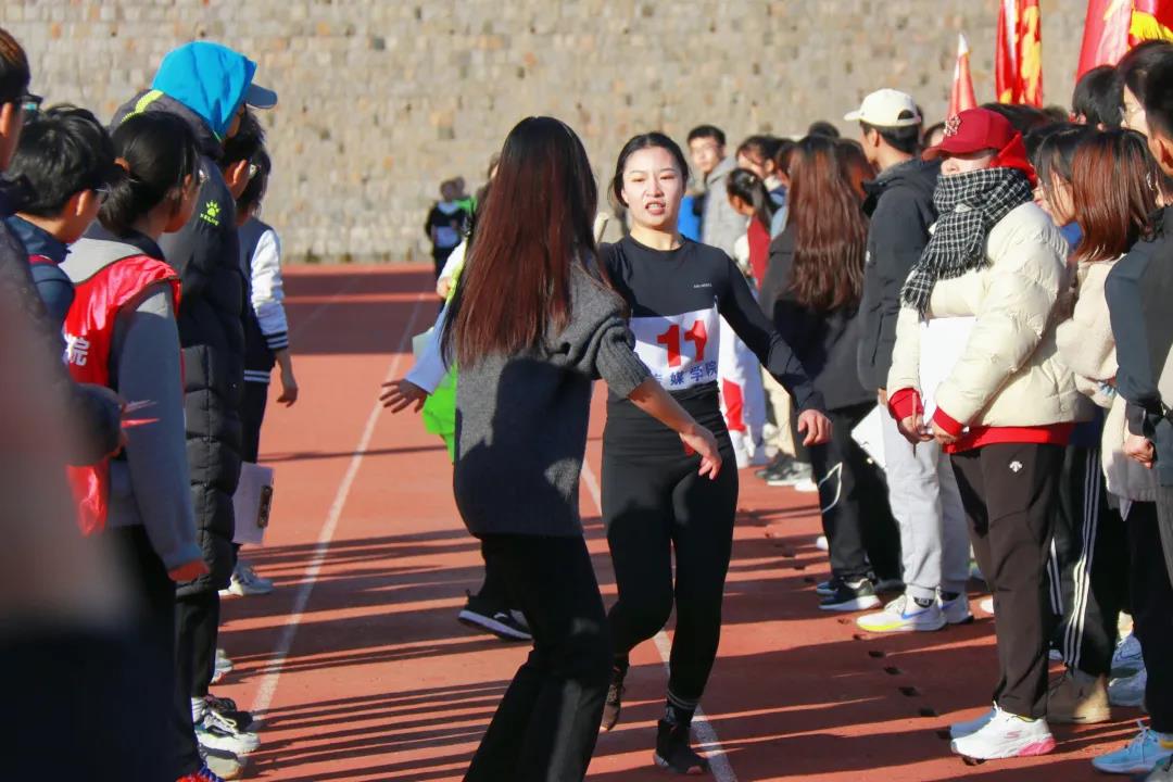 各位女生选手也斗志满满,在赛前相互加油鼓劲,颇有“巾帼不让须眉”之风。比赛开始了,第一圈大家保存力气,匀速前进,第二圈逐渐加快脚步,并在最后冲刺,把接力棒传给队友。每一棒都十分默契,气喘吁吁过后是相视一笑。功夫不负有心人,传媒女子组最终获得了第四的好成绩。
