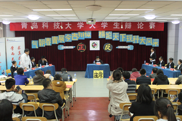 11月8日下午2:00,青岛科技大学第十四届辩论赛在崂山校区大学生活动中心拉开序幕,首场比赛中,反方传播学院以90.5:87.5战胜正方中德科技学院晋级下一轮。艺术学院吴昊、张磊老师,信息学院祁华欣老师、机电学院周广振老师担任评委,传播学院分团委部分老师及校、院学生会主席作为嘉宾出席了比赛。