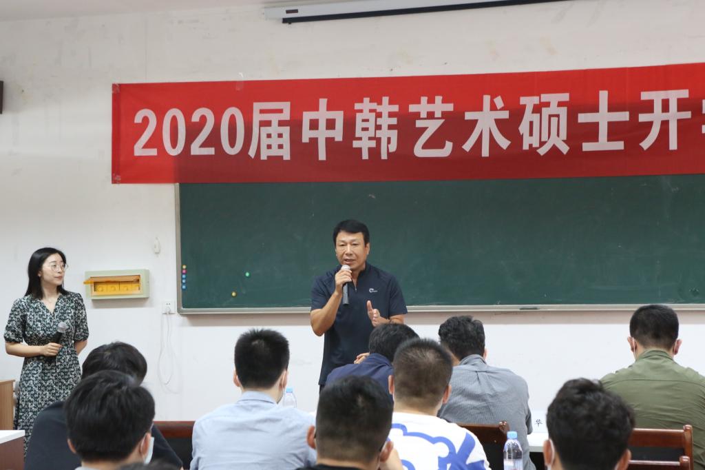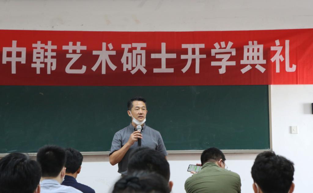杨建华教授的讲话表达了对中韩艺术硕士项目的期望,并指出中韩艺术硕士项目有着优质的办学资源、优秀的师资队伍,希望同学们能够珍惜机会,勤奋学习,将来为中韩两国文化艺术交流做出贡献。