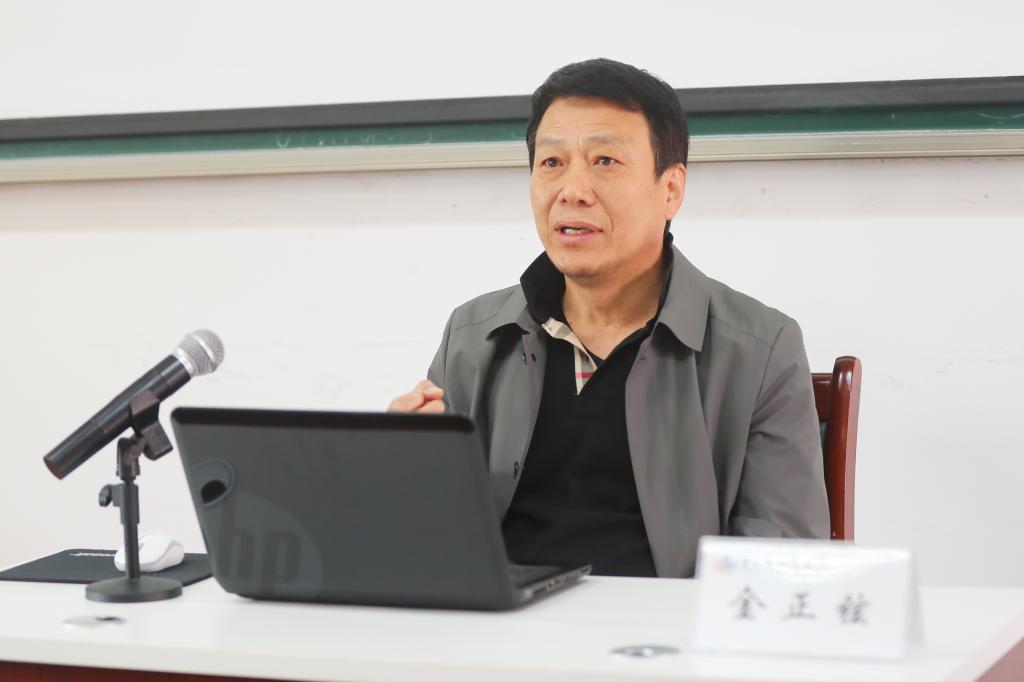金正铉作了题为“有关场面化变化产生的叙事”的报告。他以迪士尼二维动画为例,向大家解释分析了场面化对媒体动画的重要性。同学们认真记录,对金正铉提出的问题进行认真思考。