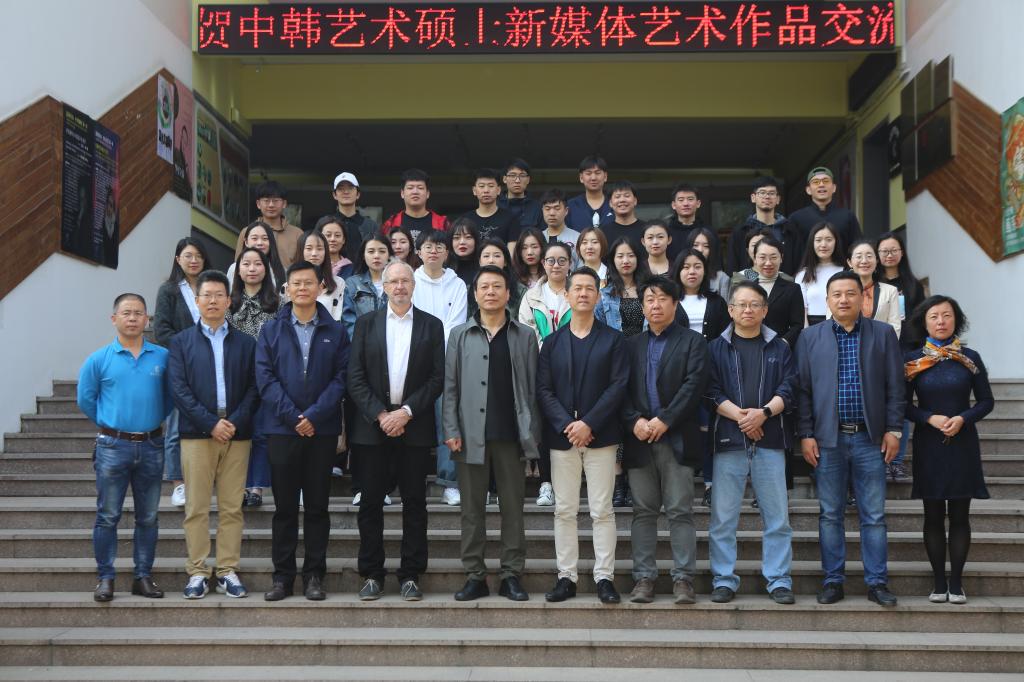 2019年中韩硕士新媒体艺术学术论坛在学院310会议室开展。参与本次论坛的有青岛科技大学特聘教授金正铉,德国汉堡大学米切尔教授,韩国中央大学金亨基教授、张圣甲教授,青岛科技大学电影天堂
