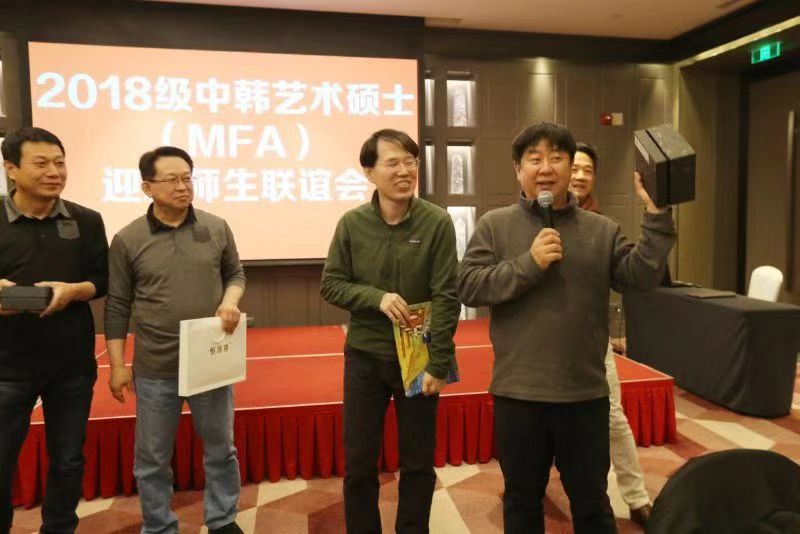 常务副院长杨建华发表了致辞,他对30名2018级学生表达了殷切的祝福,希望他们珍惜机会,好好学习,立志成才,并成为中韩科技、文化,特别是影视动漫领域交流的使者。杨院长还对本学期中韩项目工作进行点评,肯定这学期所取的成绩,同时也指出了相关不足,鼓励大家在2019树立更高目标,在中外合作办学领域有更大的提高。活动中,学生们自发的向教授们赠送精心准备的礼物以表示对教授的感谢,最后全体师生合影留念。