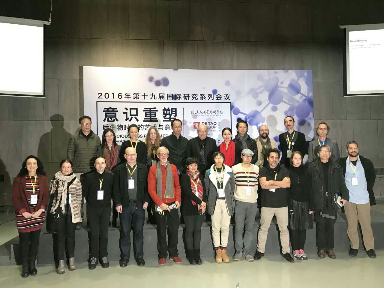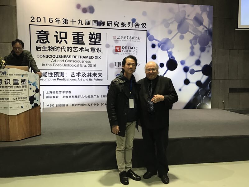 2016年第十九届国际研究系列会议“意识重塑:后生物时代的艺术与意识”在上海M50创意园举行。本次会议的主题为“可能性预测:艺术及其未来”。会议由英国普利茅斯大学星球学院创会主席、新媒体艺术先驱及创新理论家、德稻新媒体艺术大师罗伊·阿斯科特(Roy Ascott) 教授主持,并集合多重领域艺术家、理论家、科学家及教育工作者参与。